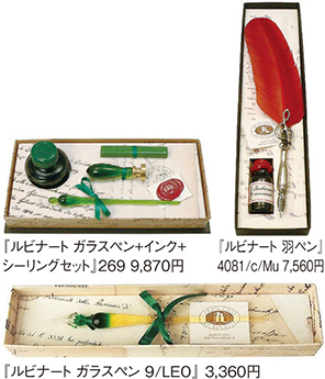 イタリアの手作りの文房具を輸入、販売している「インティーク」。人気の商品は「ルビナート社」の『ガラスペン』。ベネチア・ムラーノ島で熟練の職人により1点1点丁寧にハンドメイドで作られたもので、ペンの触り心地、書き味、インクの持ちの良さから、世界中で愛用されているヒット商品。忙しい毎日の中で、ゆっくり手紙を書くゆとりのある時間を過ごしましょう。