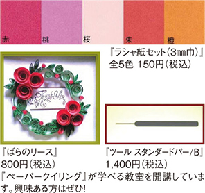 専用のペーパーを使い、立体的なお花や独自の模様が手作りできる『ペーパークイリング』。古くは、イギリスやフランスの修道院で、細長い紙を鳥の羽に巻きつけて形を造り、本や家具などを美しく装飾していた。身近な素材で出来る繊細で可愛らしいクラフトとして、日本でも徐々に話題をよんでいる。まずは、ニードルなどの道具を使い、ペーパーをくるくる巻いて、お気に入りの形を形成してみよう。