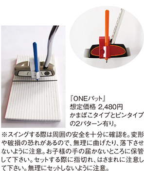 ゴルフのパッティング技術を向上させる独自の練習道具『ONEパット』を開発したのは、クレーンのリース業や工業設備の据え付けを手がける「クボタ重興業」。金具でパターに鉛筆を固定し、下に敷いた紙に線を書き、スイングの軌道を確認するための器具。場所を取らず扱いも簡単なので、今後はゴルフ用品店などへの販路の開拓も視野に入れている。