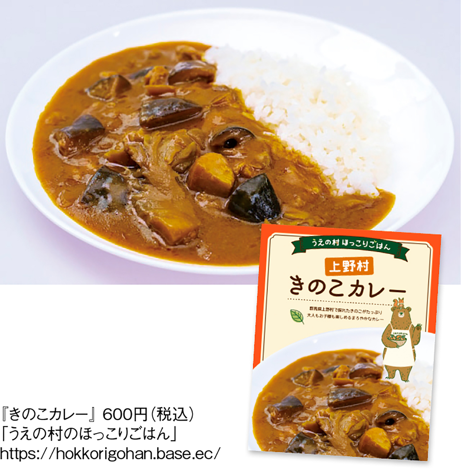 見渡す限り山に囲まれた群馬県の秘境・上野村。この村の豊かな自然の恵みを活かしたごはん・お惣菜シリーズが『エムラボ株式会社』の「うえの村ほっこりごはん」。中でも人気の『きのこカレー』は、上野村産のしいたけと群馬県産まいたけ、2種類のきのこがたっぷり入ったご飯がすすむカレー。その美味しさの秘密は、チキンをベースに隠し味に入れたプルーンピューレ。マイルドでフルーティーな甘口の味わいで、子どもでも食べやすいカレーに仕上げてある。