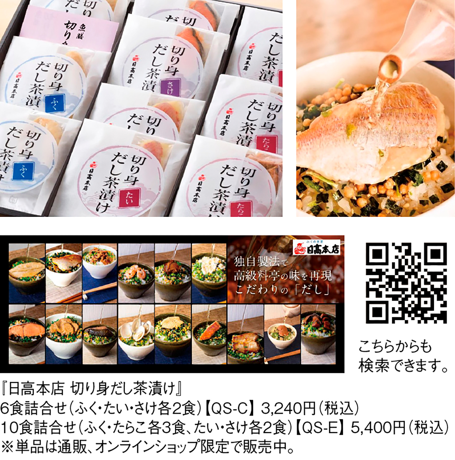 手軽な軽食、夜食としてのお茶漬けのイメージを覆すのが、高級魚フグをはじめとする魚の切り身と液体だし、具材がセットになっている『株式会社日高食品』の『切り身だし茶漬け』。切り身はレトルトパックに入っているので、常温での保存が可能。だしも料亭の味をイメージした。高級感もあって、不意な来客様へのおもてなしにもお出しできる。フグやタイ、アナゴ、ノドグロ、ウナギなど全15種類が揃った逸品。贈り物にもぴったり。