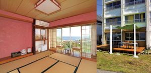 40年前の保養所をリノベーションした『シラハマアパートメント』。漆喰と畳の匂いがどこか懐かしい和室からは海が臨め、開放的な洋室はパイン材が温もりのある空間を演出。1階のカフェにはゆったりしたソファーがあり、ペット連れには海を見渡せるテラス席がオススメだ。潮風に吹かれながらのカフェタイムで最高のひと時を過ごせる。