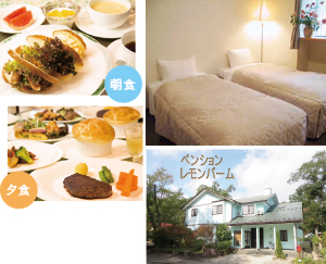 栃木県・那須高原にある『ペンション レモンバーム』。ロイヤルロード沿いにあり、人気のセントミッシェル教会、ステンドグラス美術館などから一番近い。夕食は、欧風家庭料理のフルコース。どれも手間暇かけて作られており、なかでもキッシュとパイ包みスープが好評。エッセンシャルオイルとアロマポットのルームサービスがあり、心地よい香りに包まれながらリラックスして過ごすことができる。