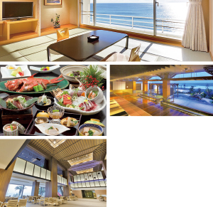 2018年12月にリニューアルオープンした『鴨川グランドホテル』。ロビーラウンジ、フロント、大宴会場が新しくなり、6階・7階には「プレミアムフロア」誕生した。29室の客室に新設された露天風呂は、海を一望できる贅沢な造り。客室は和モダンな雰囲気の和室のほか、畳の居室にイス・テーブルを備え、ベッドを設置した和洋室など、広さや設えが異なる7タイプ。お部屋食も楽しめるので、家族や親しい友人と気兼ねなく過ごせる。