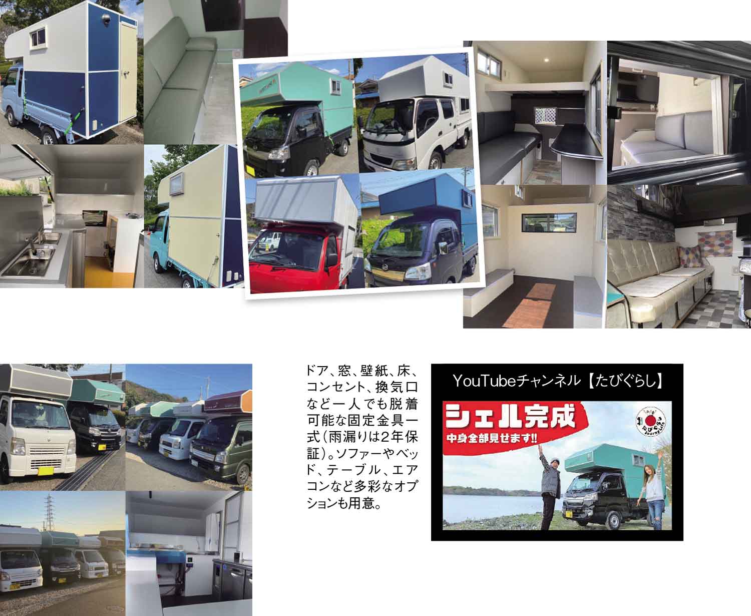 軽トラックの利点は、税制的な部分も含めて維持費の安さとコンパクトで運転しやすい割に搭載できる重量が多いこと。そんな軽トラックの荷台部分に脱着することができる多用途なシェルを製作・販売する『SECRET BASE 58』。シェルの窓や床、壁面には建築用の資材を使用して居住性を確保。約65種類の外装カラーに電源、エアコン、家具、ドア、内装共に豊富なオプションも用意。移動販売車や移動事務所、キッチンカー、シェルター、そして今流行のアウトドア用のキャンピングカーなど、これまで一つとして同じものを作ったことがないと、完全受注生産でお客様のご要望を細かく再現可能。夢をかなえる、あなたのオンリーワンを造ってみては。シェルが必要ないときは、付属のジャッキで車体から下ろせば普通の軽トラックとしても使用可能だ。価格は、シェルの基本ベースで35万円からと車輛代と併せても非常にリーズナブルだ。