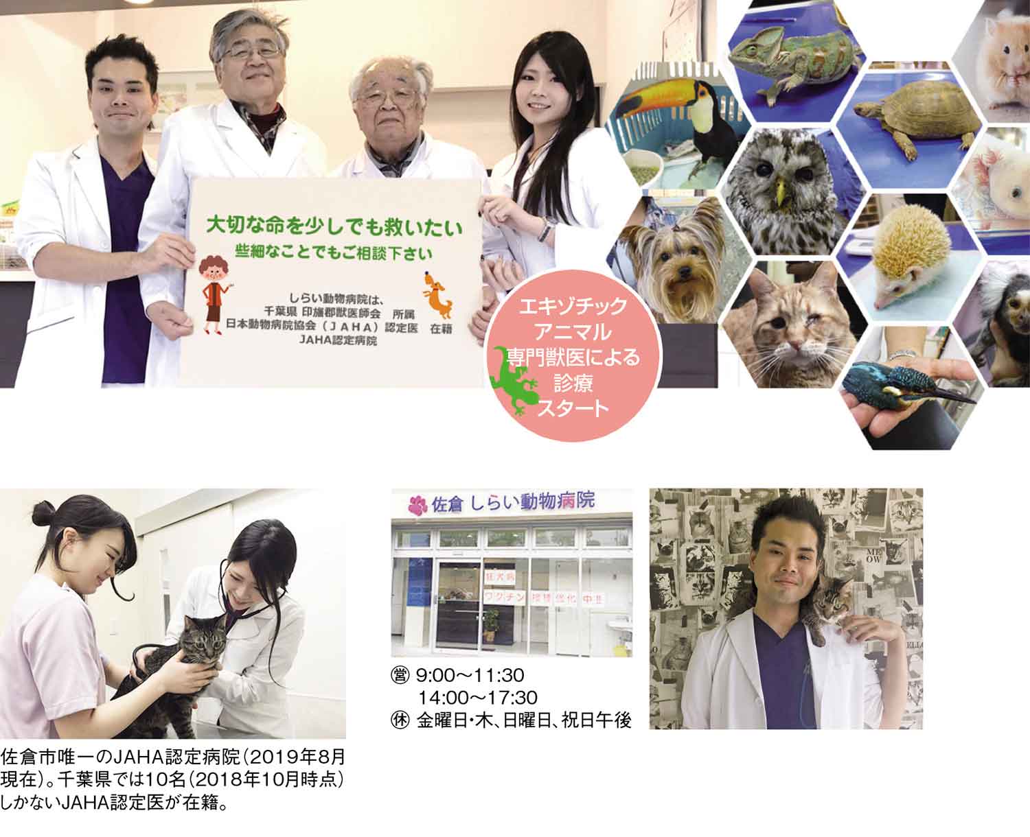 約半世紀にわたり、千葉県佐倉市のホームドクターとして動物たちの診療・治療を行ってきた『佐倉しらい動物病院』。代々受け継がれてきた診断・治療の技術と、最新の医学的な見地を組み合わせ、ペットの健康を支えている。診療内容も健康チェックから難病治療まで幅広く行っているので安心。2020年1月からは、エキゾチック診療科の診察もスタート。ウサギ、フェレット、ハムスターなどに加え、小型~大型鳥類や小型~中型爬虫類の診察も受け持っている。近年、繁殖や流通の発達に伴い、飼育頭数が増加傾向にある爬虫類やレアアニマル達を飼育するうえでの飼育指導も行っている。