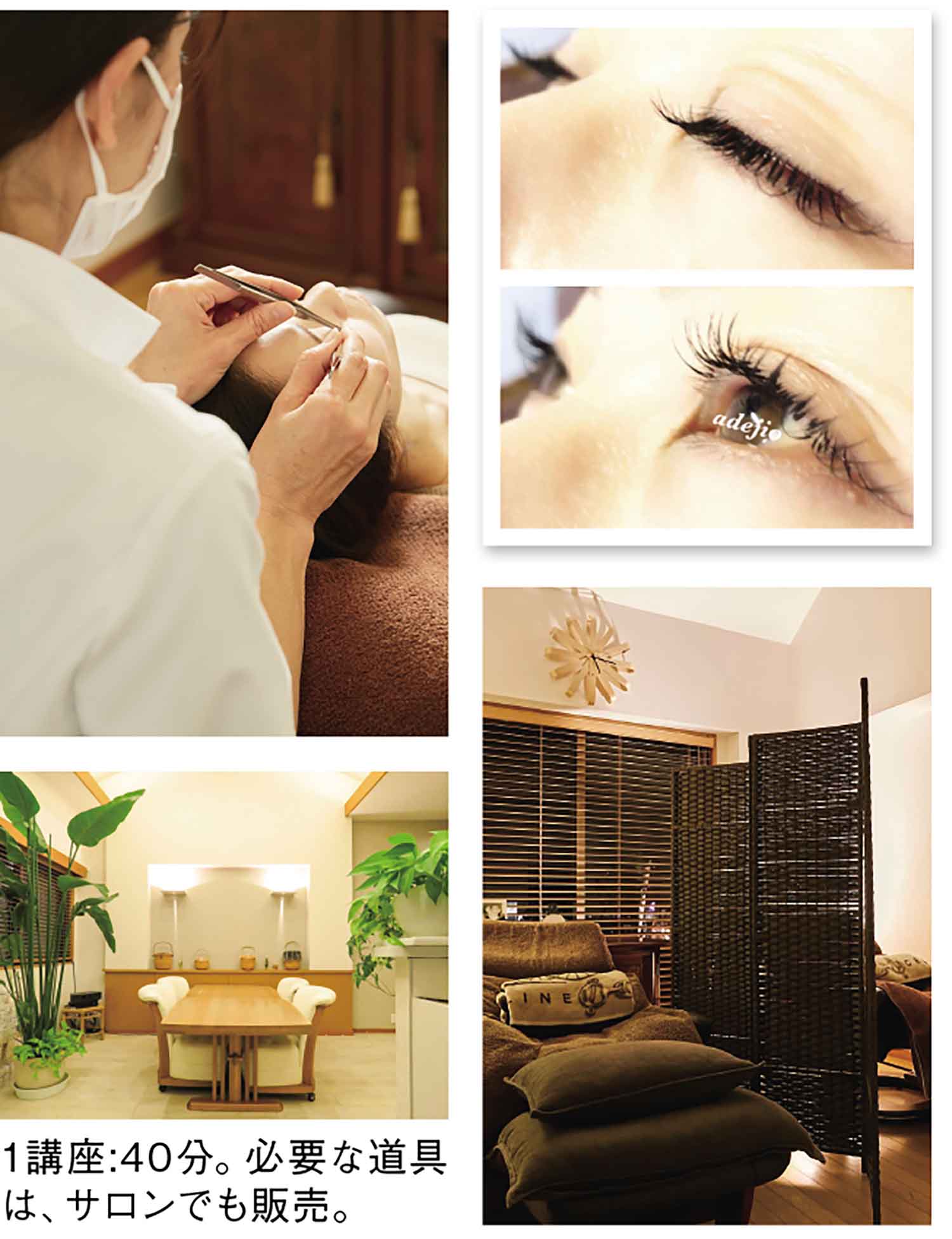 「結婚・出産など様々な理由で美容師の仕事が続けられなくなった」「独立したい」「売上アップしたい」という方に向けて、『Eyelash Extension Salon Adejio』ではまつ毛エクステンションスクールを開講。日本理容美容教育センター認定を受けた講師が授業を進め、まつ毛パーマも受講できる。スクール卒業後、すぐに現場に入れるようにマンツーマンレッスンでレクチャーを。