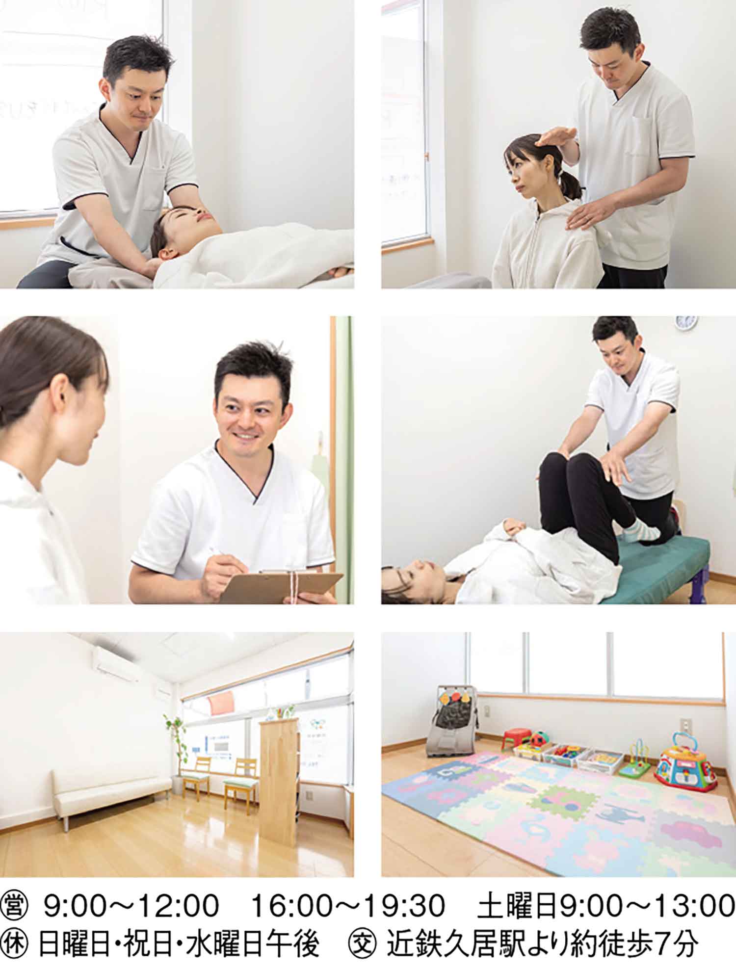 三重県津市にある『くらた接骨院』は、女性にとことん優しく、妊婦さんや小さなお子様にも対応できる数少ない接骨院。「妊娠中で電気治療や湿布ができない」「子どもも事故に遭ったけど見てもらった方がいいのかな」といった悩みがあればぜひご相談を。女性スタッフが常駐しており、キッズスペースやバウンサーも用意してあるので、小さなお子様連れの方でも安心して来院することができる。