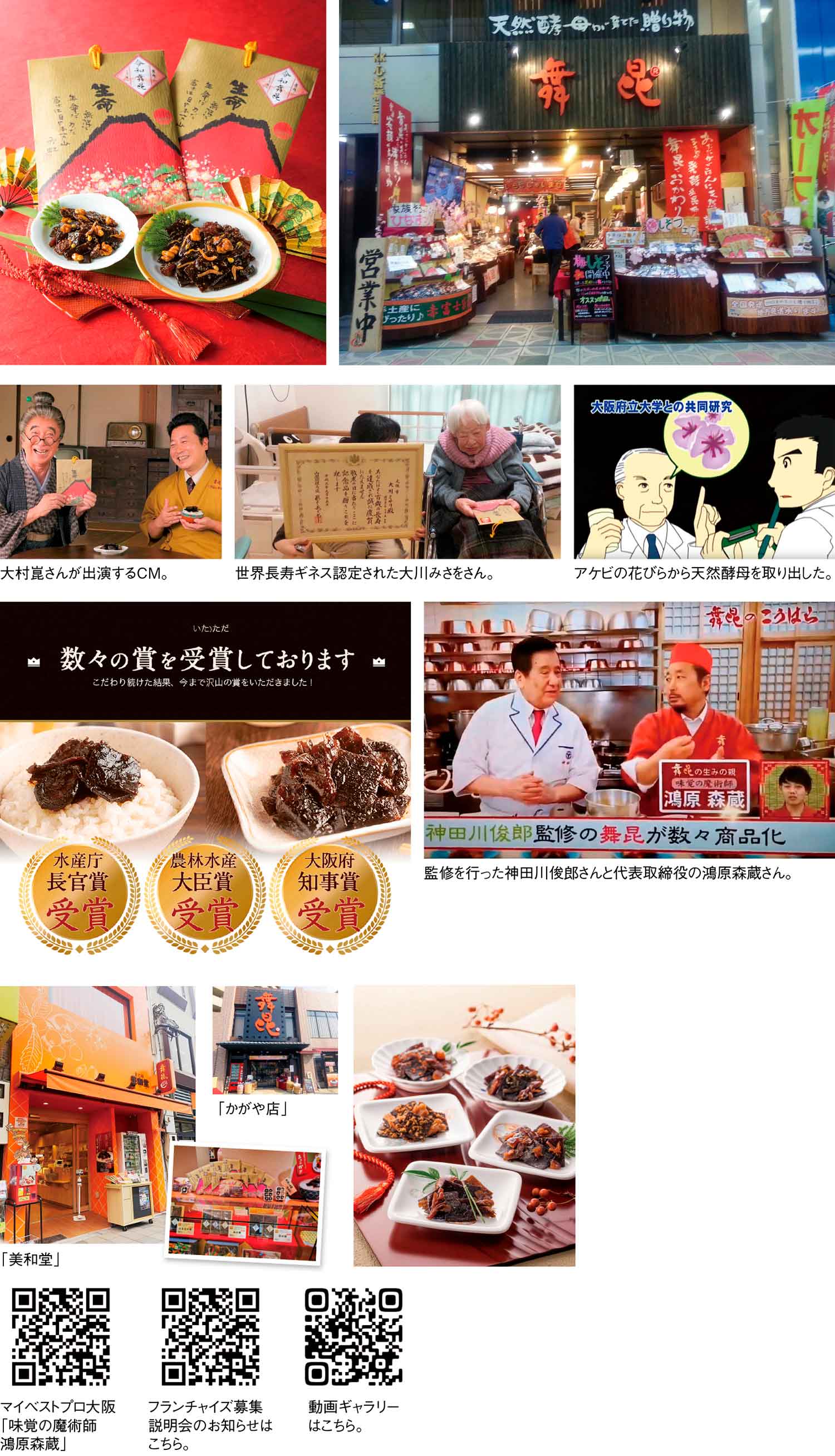 大村崑さんがテレビで紹介している『舞昆』。アケビの花びらの発酵菌で昆布を発酵させた健康食品だ。大阪府立大学との共同研究では、発酵させた昆布でマウスの中性脂肪が減ったと、その効果が認められている。