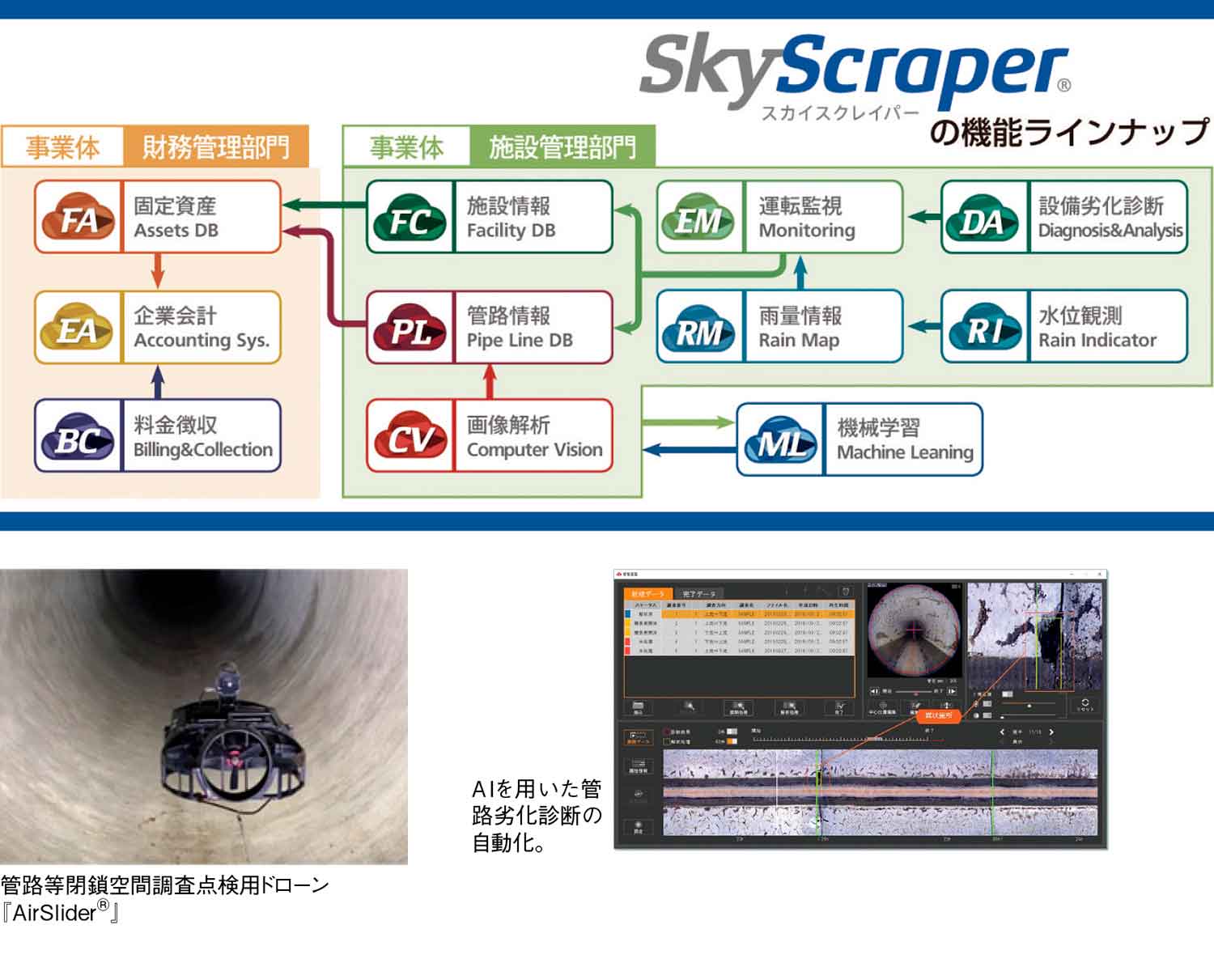国内各地の上下水道の整備、管理運営、更新を支えて70年の歴史を刻む『株式会社NJS』は、世界の開発途上国における水と環境の改善にも貢献してきた会社だ。日本政府の開発援助ODAの事業を中心に世界90カ国以上の上下水道プロジェクトに参画し、マスタープランの策定や実現可能性調査、設備の設計、事業費積算、施工監理、人材育成、事業経営アドバイスなど幅広く実施してきた。国内では、上下水道インフラのライフサイクルを点検調査、解析診断、修繕改築、運転管理、災害対策、運営管理の六つのステージで捉えて事業体をサポートしてきたが、今、力を入れているのは、高度成長期に整備し、老朽化が進む設備の点検調査、最適な修繕・改築の支援。加えて、クラウド情報管理システムや下水処理プロセスシミュレーター、管路調査ドローンなど新たな管理技術の提供も進めている。