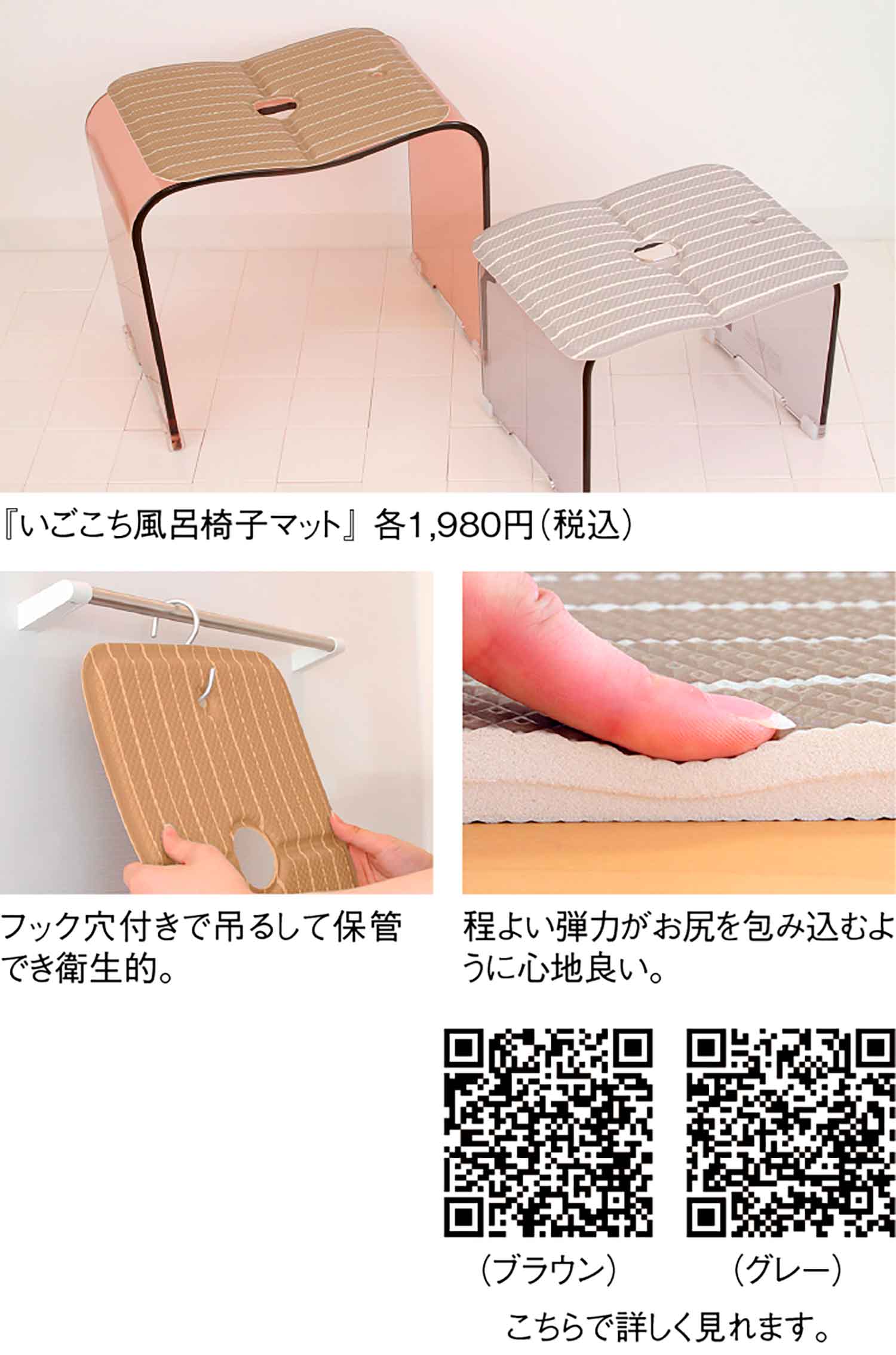 お風呂やシャワータイムは、一日の疲れを癒す時間。そんなリフレッシュタイムに冷たく硬い風呂椅子に座った時の感触ほど不快なものはない。これを敷けば、冷たく硬く感じる風呂椅子も柔らかく優しい座り心地に。程よい弾力で、表面は凹凸があるエンボス加工で滑りにくく、抗菌加工付きでカビにくい。お尻の肉が少なくなり痛みを感じやすくなるシニアの方や、風呂床に敷けば床に直接座って体を洗う方にもとても便利。誰が使っても満足の座り心地だ。