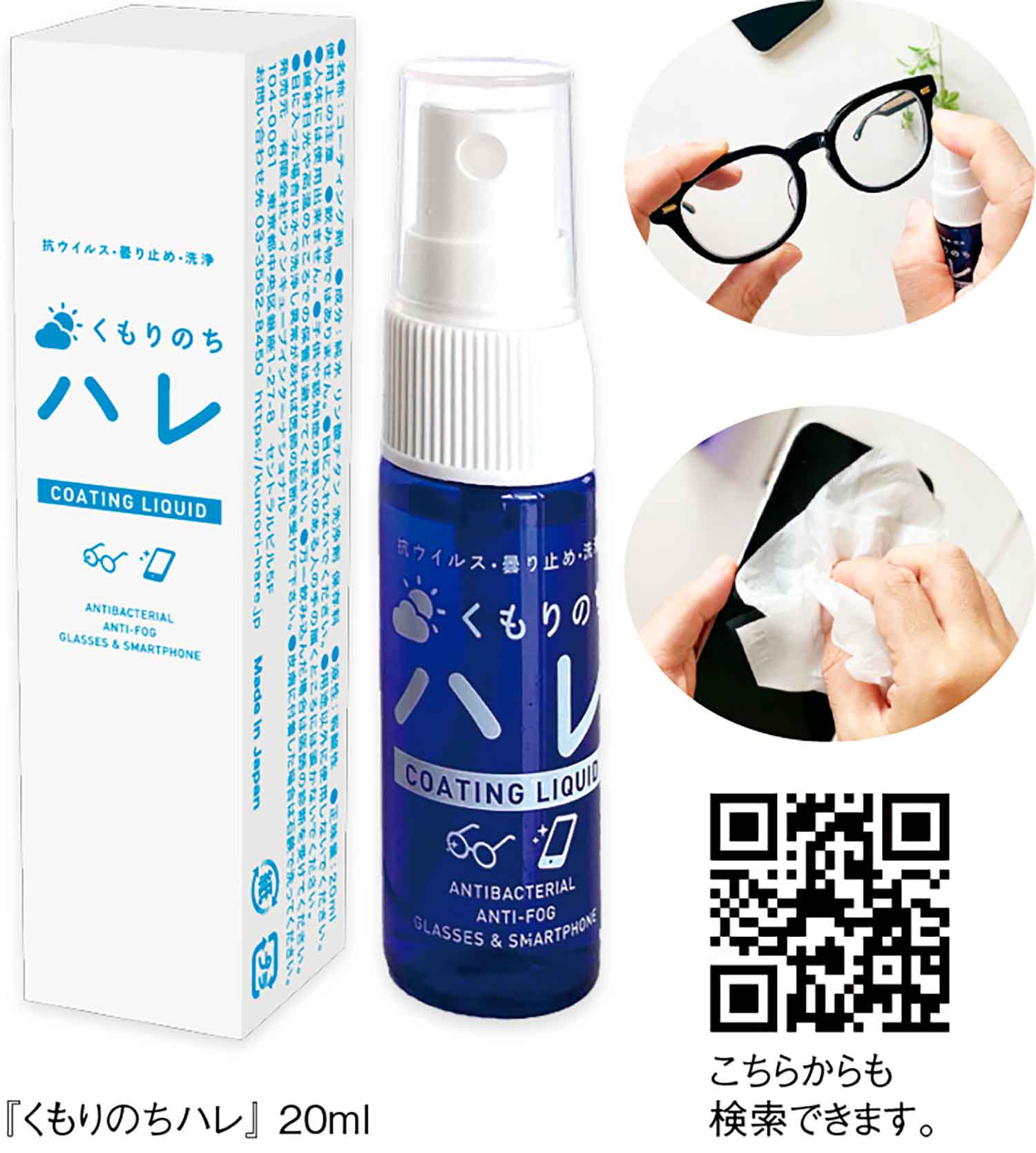 マスク生活が定着した中、メガネ着用でレンズの曇り止めが必須という人にオススメなのが、『有限会社ウィンキューブインターナショナル』のコーティングリキッド『くもりのちハレ』。メガネレンズやスマホ画面、コンパクトの鏡など用途も多様。塗布して磨くだけで洗浄・曇り止め・抗菌効果を発揮する。いったん曇らせてからすぐに曇りが引いていくという新発想で、効果は三日~二週間と長時間持続する。