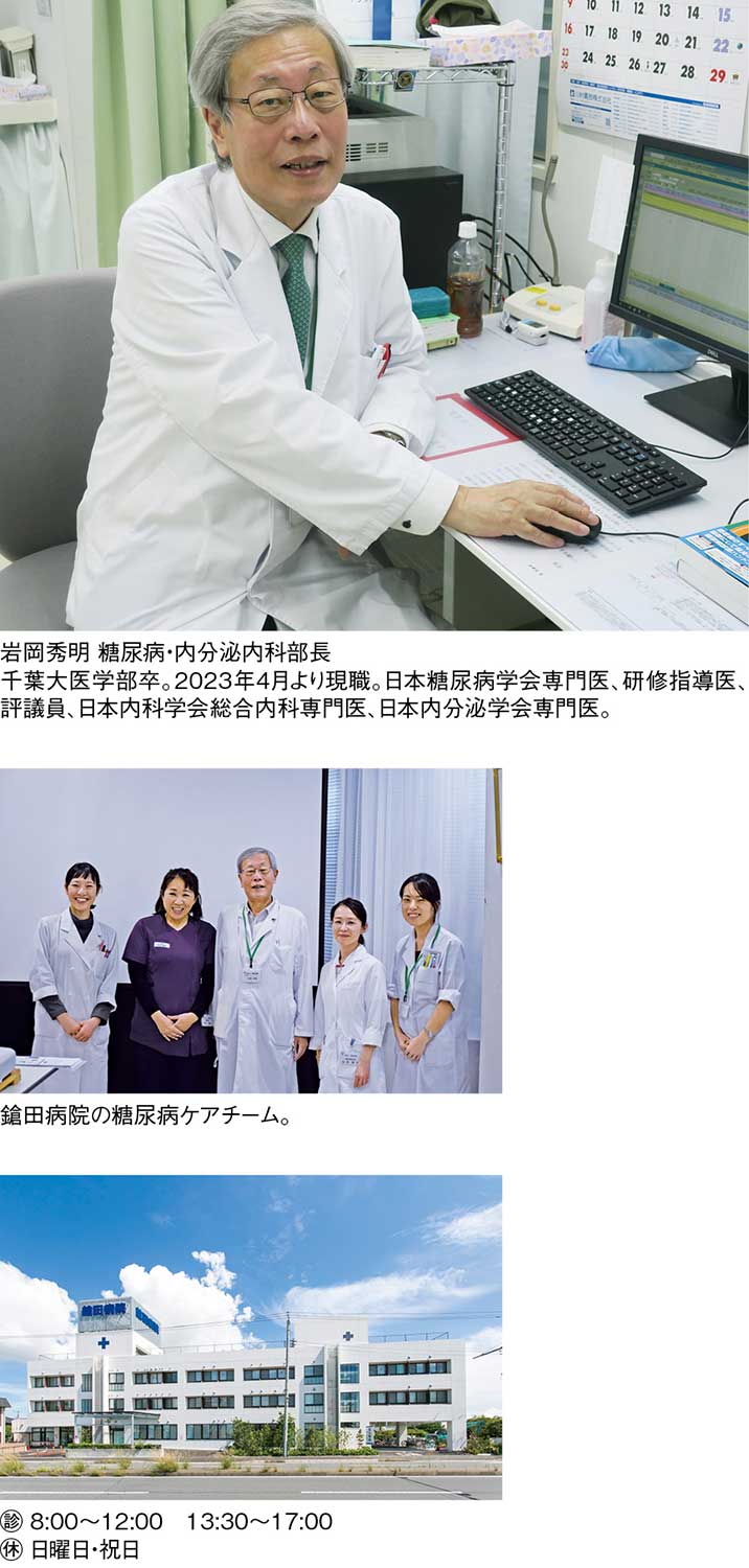 『医療法人鎗田病院』の岩岡秀明糖尿病・内分泌内科部長が2024年1月に刊行した「プライマリ・ケア医のための新・糖尿病診療」は、長年の診療経験でつかんだ薬剤選択や合併症管理、患者支援の勘所を余すことなく紹介した、糖尿病の初期診療に当たる医師の教科書ともいうべき一冊だ。病院での診療もその深い知見と豊富な臨床経験が生かされる。