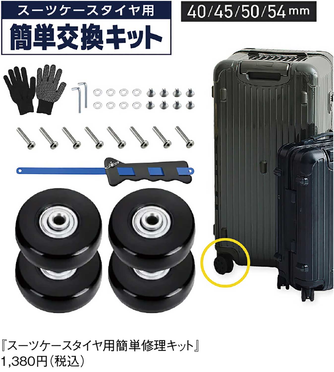 『WORLD STYLE』が販売する『スーツケースタイヤ用簡単修理キット』は、すり減ったキャスターを自宅で手軽に補修できる実用アイテム。貼るだけ簡単、静音性と走行性を回復し、交換不要でコスト削減。旅行前の応急対応にも最適で、工具不要、初心者でも安心。高品質のゴム製タイヤを使用し、耐久性も抜群。キャリー寿命を延ばす。日常使いにも◎。見た目もきれいに整い、快適な移動を長く実現可能なオススメ商品だ。