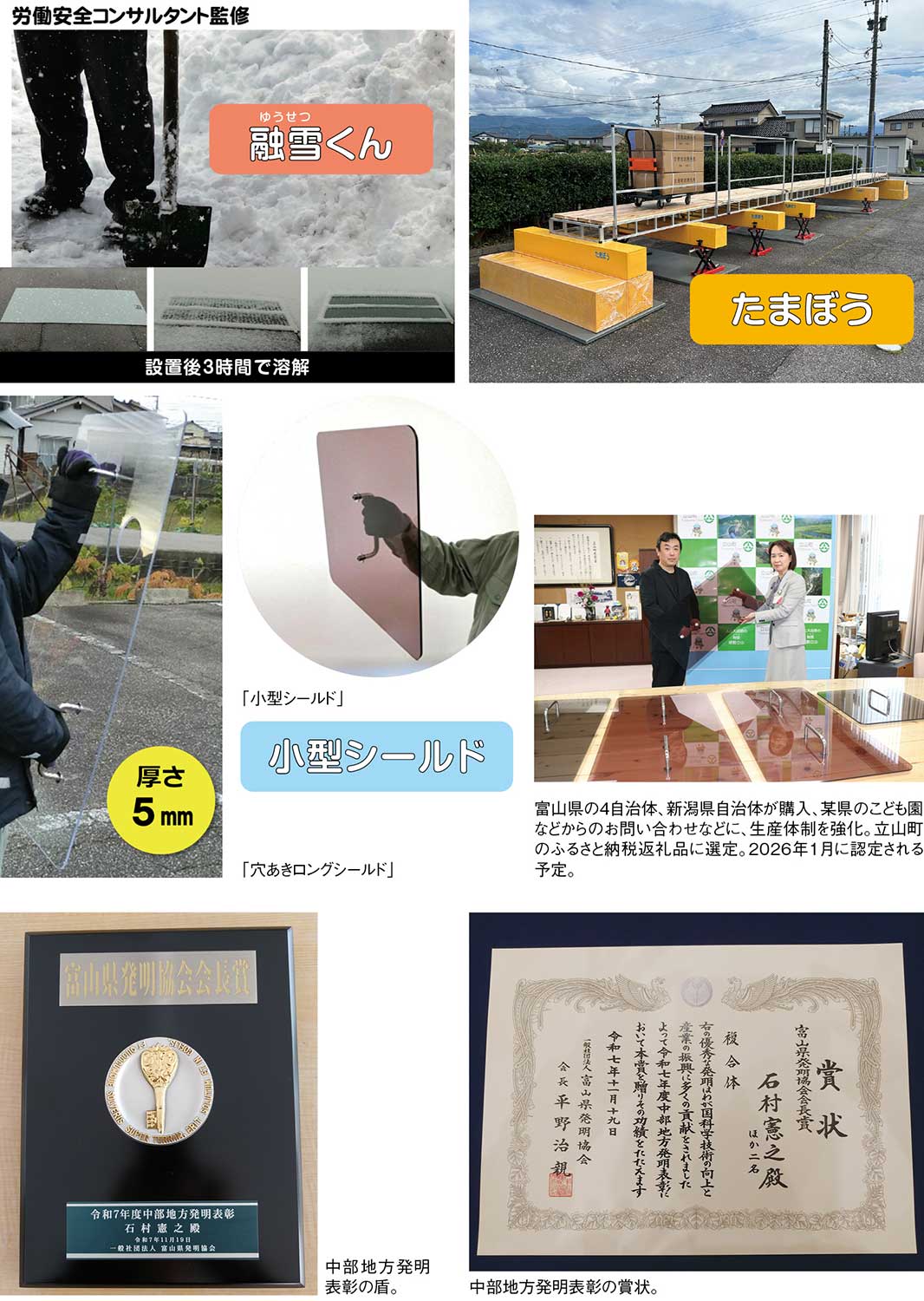 『『Nicoldsystem』は、「想像」を「創造」し続け、世の中に新たな価値を生み出す発明の数々や災害復興にも尽力する社会への貢献度が高く認められ、一般社団法人企業価値調査機構主催の「SMB ExpertAWARD防災部門」を2024年、2025年と2年連続でSMBエキスパート企業賞を受賞。さらに、令和7年度「中部地方発明表彰富山県発明協会会長賞」をたまぼう「複合体」が受賞。今後は「複合体」を活かした新製品を試作していく予定だ。さらに同社は、防災分野にとどまらず、エネルギー分野においても高い技術力を発揮している。