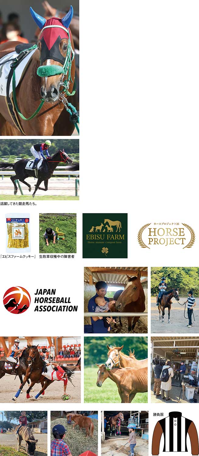 プロジェクトを象徴する取り組みの一つが、「EBISU FARM」との連携だ。ここでは引退馬の飼養に加え、馬糞を長期間熟成させた堆肥を用いた循環型の農業が行われている。無農薬で育てた牧草や野菜は、就労支援施設の協力を得て加工・梱包され、馬の保護と障がいのある人の仕事づくりを同時に実現。『ホースプロジェクト3S』では、こうした牧草を活用した馬用おやつの開発・販売も行い、購入行為そのものが支援につながる導線を整えている。さらに田中さんは、引退馬の可能性を広げる新たな構想にも着手している。その一つが、馬上でボールを操る競技「ホースボール」への挑戦だ。競走生活を終えた馬を競技馬として再育成し、新たな舞台で活躍させることで、「引退=余生」という固定観念を超えた選択肢を提示しようとしている。清掃業で培った現場主義と継続力を背景に、馬と人の関係を長期的に支える取り組みは、今後さらに広がりを見せそうだ。