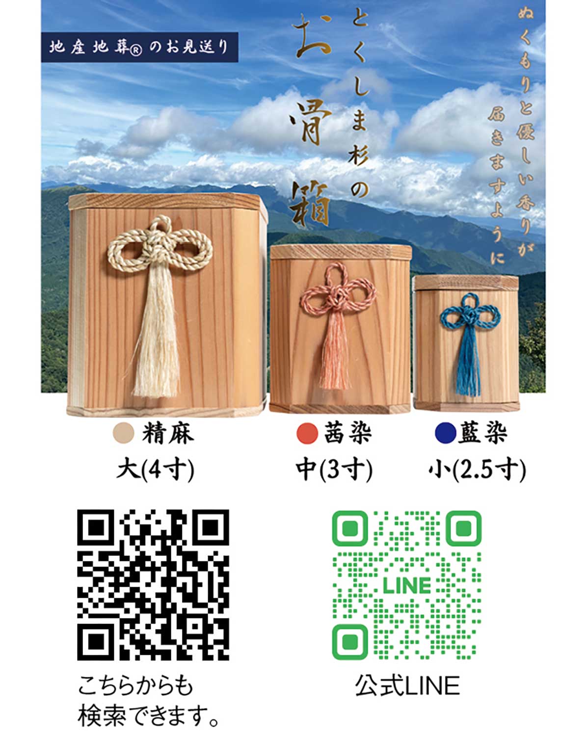 徳島県の『杉の木と麻のぬくもり工房』が手掛けた『とくしま杉の骨壺』は、「地産地葬」の理念を形にした温もりある新しい仏具。地域資源を活かすことで環境負荷を抑え、地元産業の活性化にも貢献している。自然と人をつなぐ骨壺は、持続可能な社会づくりへの想いを込めた逸品であり、徳島県産の杉材を使用し、木の香りや優しい質感が故人を安らかに包み込む。「地産地葬」という新しい葬送の形だ。