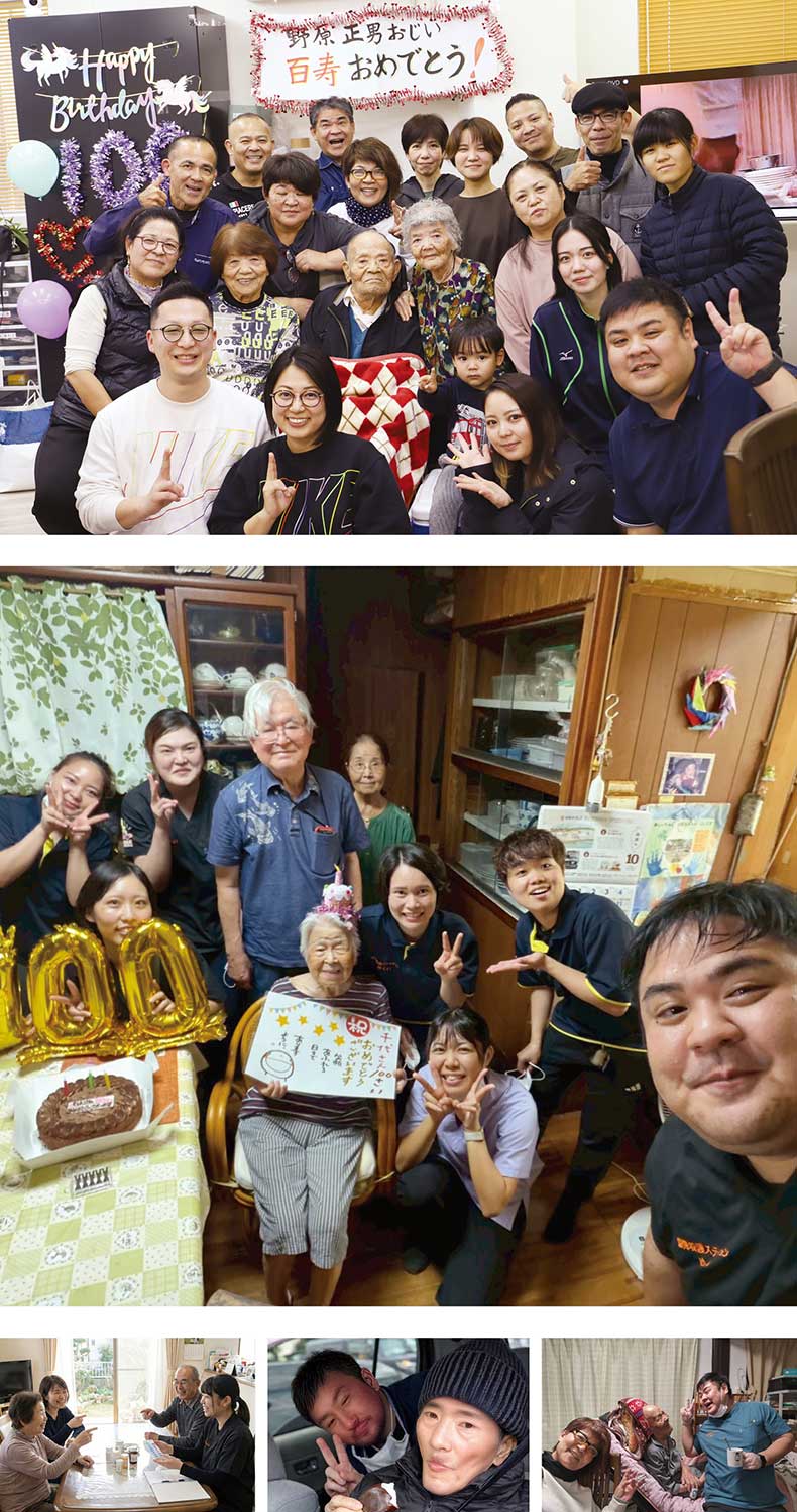 さらに、看取りのあとには家族とともに故人の思い出を語り、静かに見送る時間も大切にしている。訪問対象エリアは、沖縄県浦添市を中心に那覇市・豊見城市・宜野湾市・南風原町・与那原町・西原町・北谷町・中城村・北中城村と幅広い。開設当初は3名からのスタートだったが、現在は「家族のように寄り添いたい」「自宅で自分らしく過ごせるようサポートしたい」という垣花さんの想いに共感した11名看護師、リハビリ職、事務員のスタッフが在籍している。