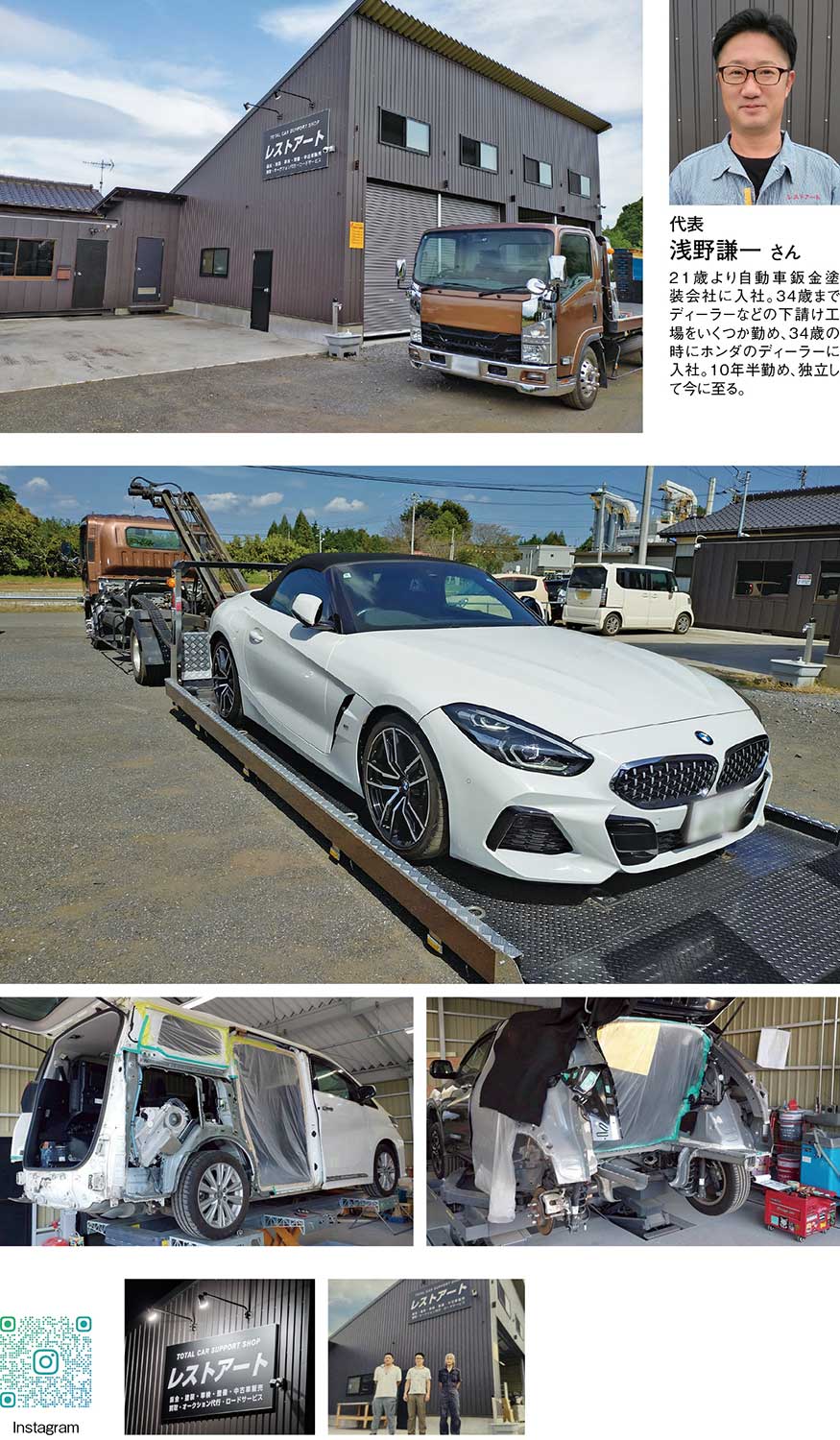 茨城県石岡市に拠点を構える『レストアート』は、鈑金・塗装から車検、整備、中古車販売、ロードサービス、レンタカー事業まで幅広く手掛けるカーショップだ。創業からわずか三年ながら、地域に密着した姿勢と確かな技術で着実に信頼を積み重ねてきた。代表を務める浅野謙一さんは、町工場とディーラー双方で経験を重ねてきた異色の経歴を持ち、その歩みと理念が『レストアート』の土台を築いている。