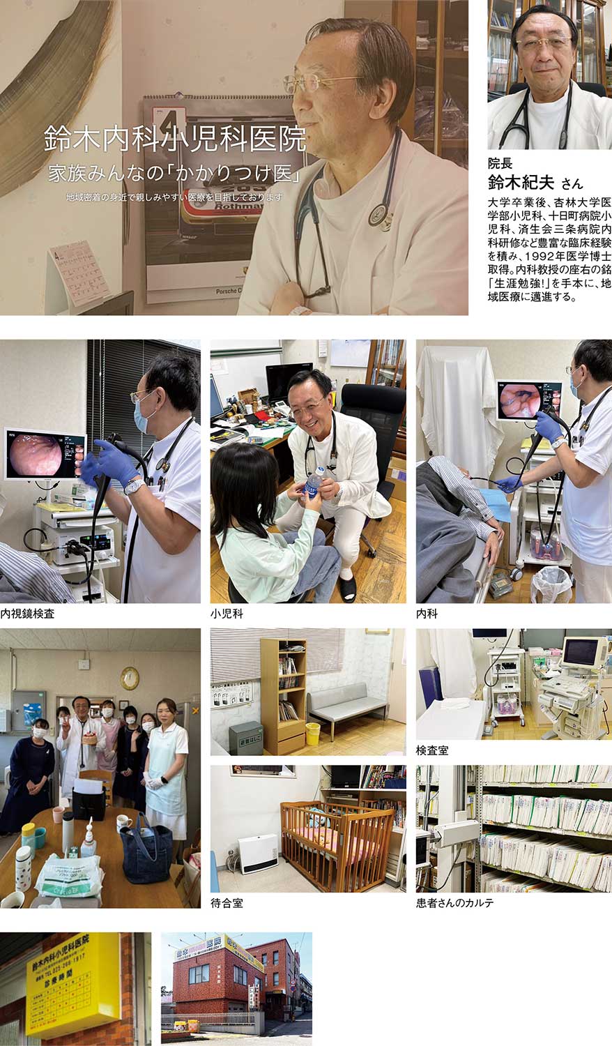 『鈴木内科小児科医院』院長の鈴木紀夫さんは、「とにかく患者さん第一」の精神で小児から高齢者まで幅広い年代の健康を支え続けてきた医師だ。医道に励む父の背中を見て育ち、「父のように内科医と小児科の両方を診る医師でありたい」と考えた鈴木さんは、まずは小児科を専門に選んだ。大学病院では、未熟児や先天性疾患を抱える子どもたちの診療を行い、新潟県立十日町病院では、先輩医師と二人三脚で命の重みと真正面から向き合った。その後、内科を改めて学びなおし、教授、指導医の先生の丁寧な指導を受けながら急性疾患から慢性疾患まで幅広く診る総合的な視点を養う。勤務医時代には、感染症分野の研究にも力を注ぎ、細菌や抗菌薬の研究、新薬の治験などにも取り組んだ。平成5年に『鈴木内科小児科医院』の副院長として父とともに診療に携わり、平成10年に院長に就任。丁寧な問診と細かな変化を見逃さない観察を診療の要としている。