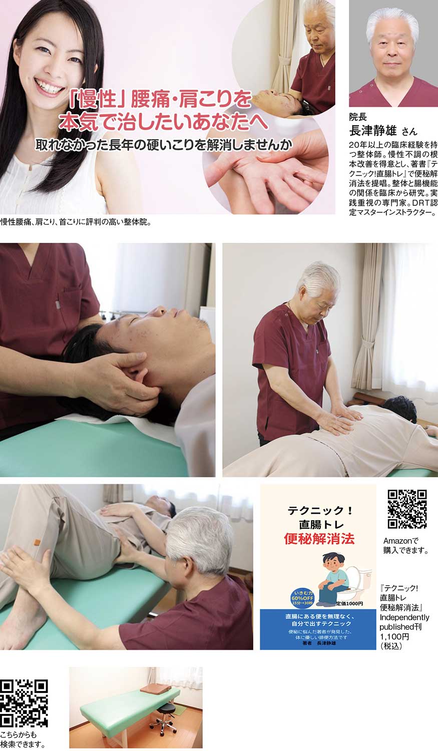 その考え方は整体にとどまらず、便秘解消法の開発にも活かされている。試行錯誤の末に生まれたのが、2025年刊行の著書「テクニック! 直腸トレ便秘解消法―直腸にある便を自力で出すテクニック」だ。本書は、「どんな方法を試しても改善しない」「便意すら感じない」「下剤が手放せない」といった深刻な悩みを抱える人に向けた、新しい発想の便秘解消メソッドを紹介している。