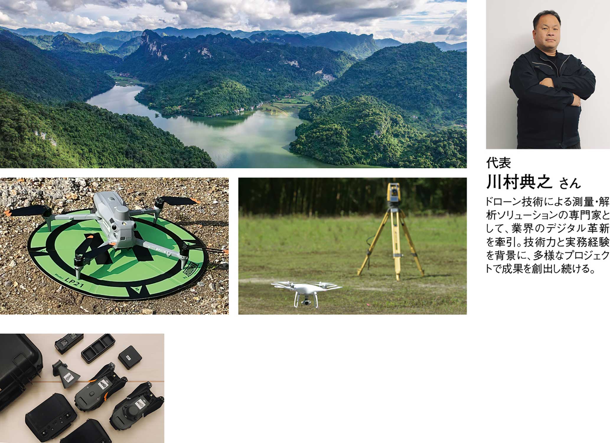 急速に進化するドローンは、高解像度カメラやLiDARなどの高度なセンサーを搭載し、地形データの取得や3Dモデル化、環境解析まで幅広い用途に対応。手作業に頼らない自動飛行による測量は、安全性の向上とコスト削減にも寄与し、従来困難であった危険地域や広大なエリアのデータ収集を迅速に行うことができる。『DSM合同会社』は、最先端ドローン技術を活用した測量事業を展開し、従来の測量手法を超える精度と効率を実現している。代表の川村典之さんは、これらの技術を駆使し、インフラ整備、都市計画、災害復旧支援など多様なフィールドで高品質なデータを提供。データは専門解析チームによって処理・解析され、地図作成や3Dモデル、変位解析レポートなど顧客ニーズに応じた成果物として納品される。『DSM』は、単なる撮影代行ではなく、最新テクノロジーと高度な解析力を融合させた「空からの測量パートナー」として、建設・土木・農林水産業など多岐にわたる産業の課題解決を支援している。ドローン技術の進化と共に、常に先進のソリューション提供を目指し、未来のフィールド測量を切り開く。