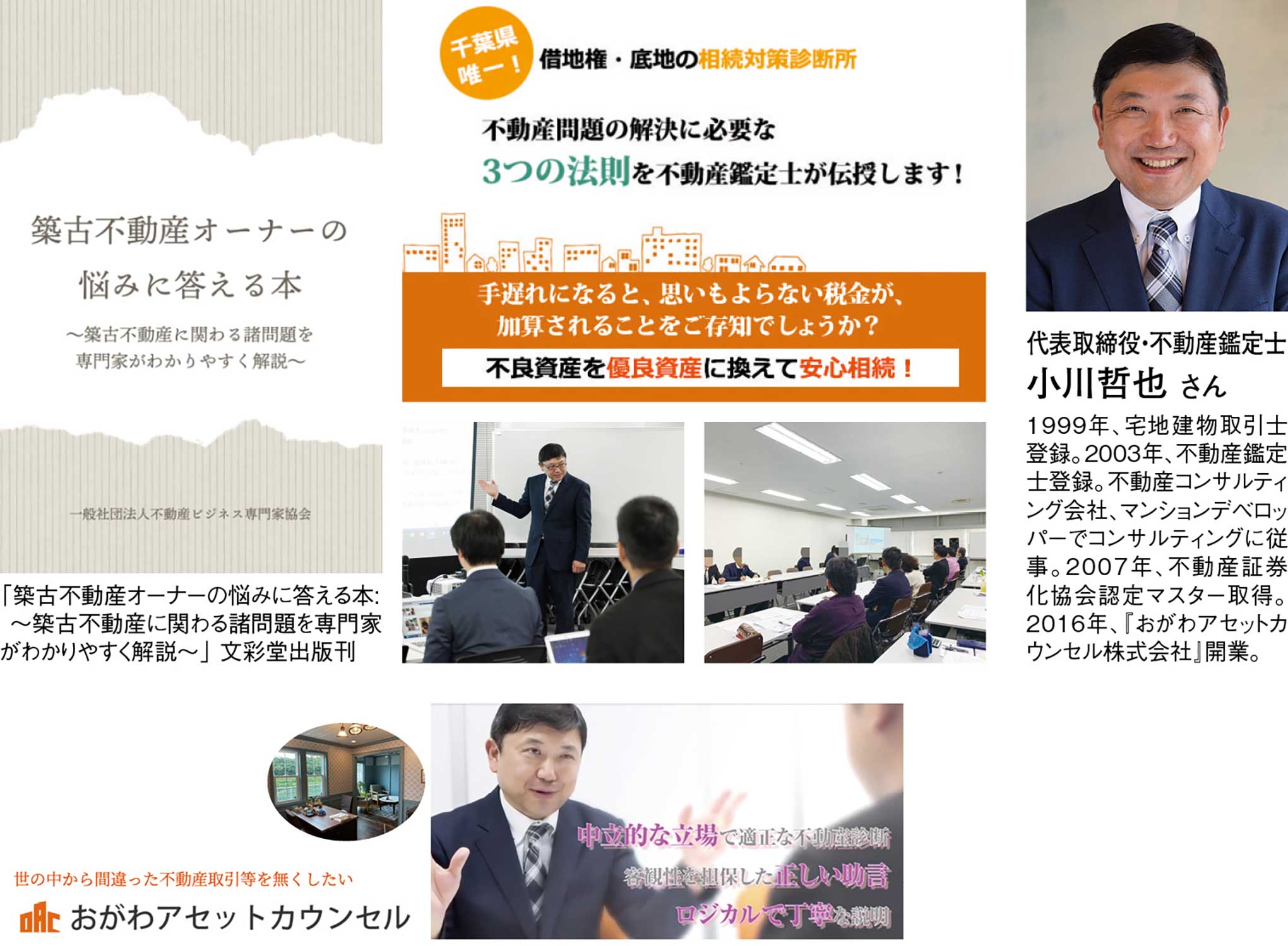 相続で取得した不動産を売却する際、「譲渡所得税が想像以上に高い」「築年数が古く評価が難しい」といった悩みを抱える人は多い。こうした課題に専門的に対応しているのが、『おがわアセットカウンセル株式会社』代表で不動産鑑定士の小川哲也さんだ。相続不動産の売却時に発生する譲渡所得税の軽減支援を軸に、築古不動産の評価や相続税との整合性を踏まえた総合的なアドバイスを行っている。