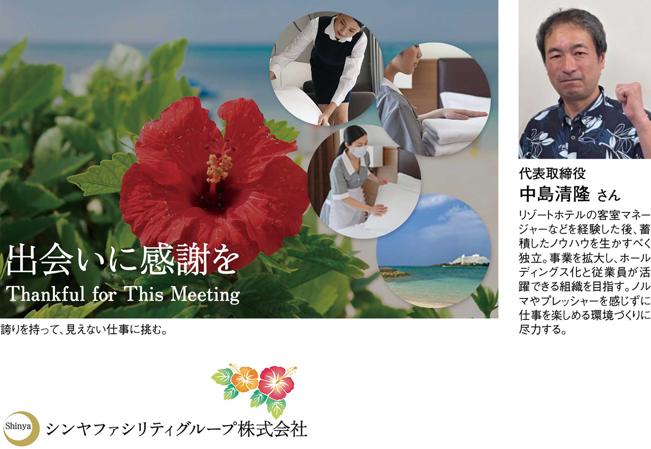 沖縄県うるま市で清掃・施設管理を手がける『シンヤファシリティグループ株式会社』代表取締役の中島清隆さんは、リゾートホテルの客室マネージャーとして品質を守り現場をまとめてきた経験を持つ。わずかな遅れや見落としが満足や信頼を左右することを現場で学んだことから、品質は気合ではなく仕組みで守り、人は尊重によって伸びるという考えに至ったという。同社は人手不足や属人化が課題となりやすい業界において、役割を明確にし、作業基準を揃え、対話を重ねながら標準化と改善を積み上げ、誰が担当しても一定品質を保てる体制づくりを進めている。