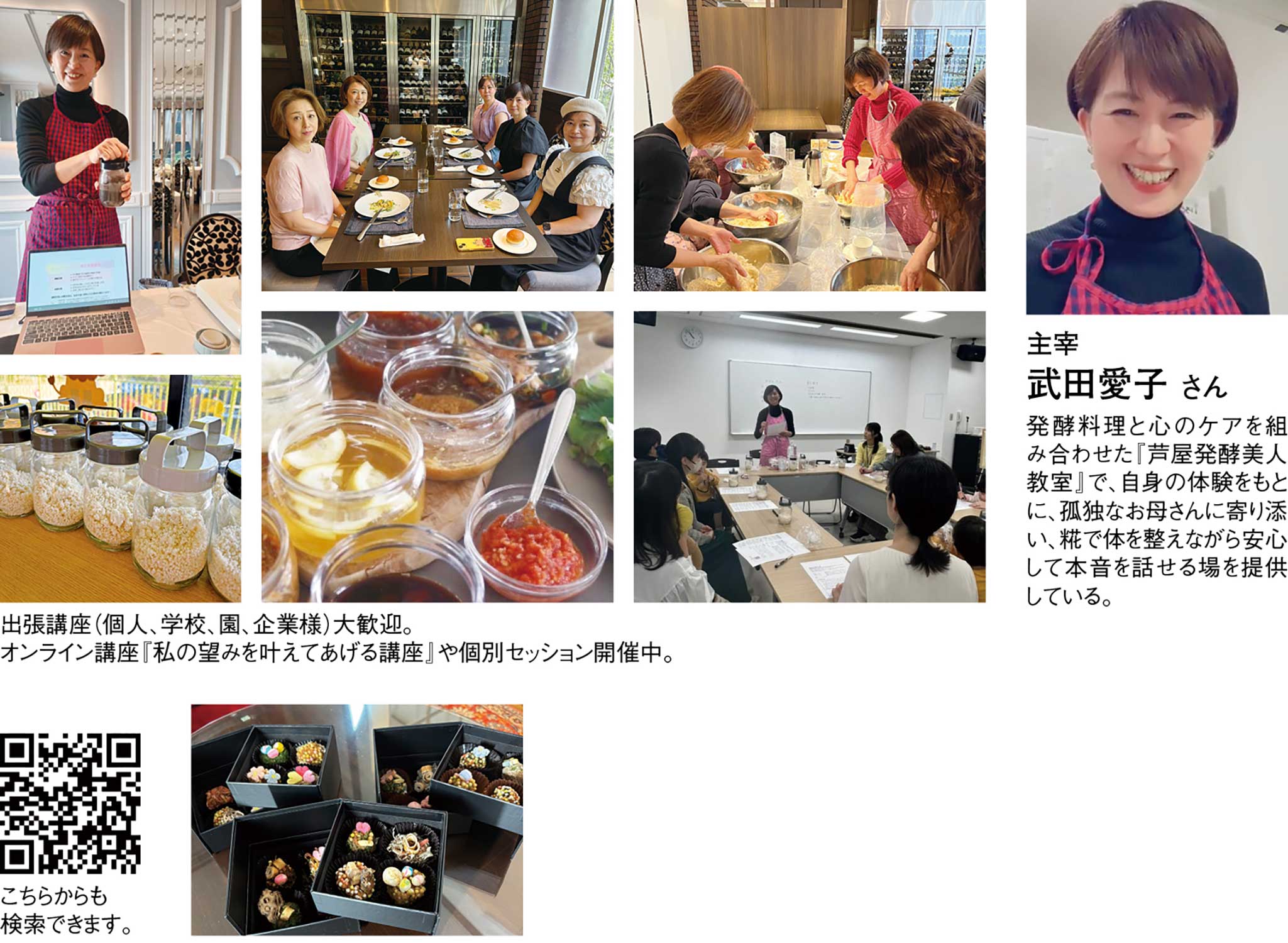 『よりそいカウンセリング・芦屋発酵美人教室』を主宰する武田愛子さんは、孤独なお母さんをなくすことを使命に、糀を使った発酵料理と心のケアで寄り添う新しいスタイルの教室を開講。疲れやストレスを抱え、周りの気持ちを優先して自分を後回しにしてしまいがちな女性の本音を安心して話せる場を提供している。糀や発酵料理を通じて体のバランスを整えながら、同じ悩みを持つ仲間と共に語り合うことで、心の重荷を軽くしていく。参加者からは「表情が明るくなった」「心が軽くなった」といった声が寄せられている。日々の子育てや家事に頑張るお母さんほど、自分の気持ちを言葉にする機会が少なくなりがち。しかし、ここでは「私はどうしたい?」という問いを大切にし、自分に優しく寄り添う時間を取り戻すことができる。糀を通じた学びやカウンセリングを経験することで、安心できる居場所と自分を大切にする力が育まれ、孤独感が軽やかに変わっていく。芦屋や神戸北野ホテルなどの特別な場所で開かれるイベントや月1回の「よりそいCafe」では、美味しい発酵料理を作りながら笑顔とつながりが生まれている。