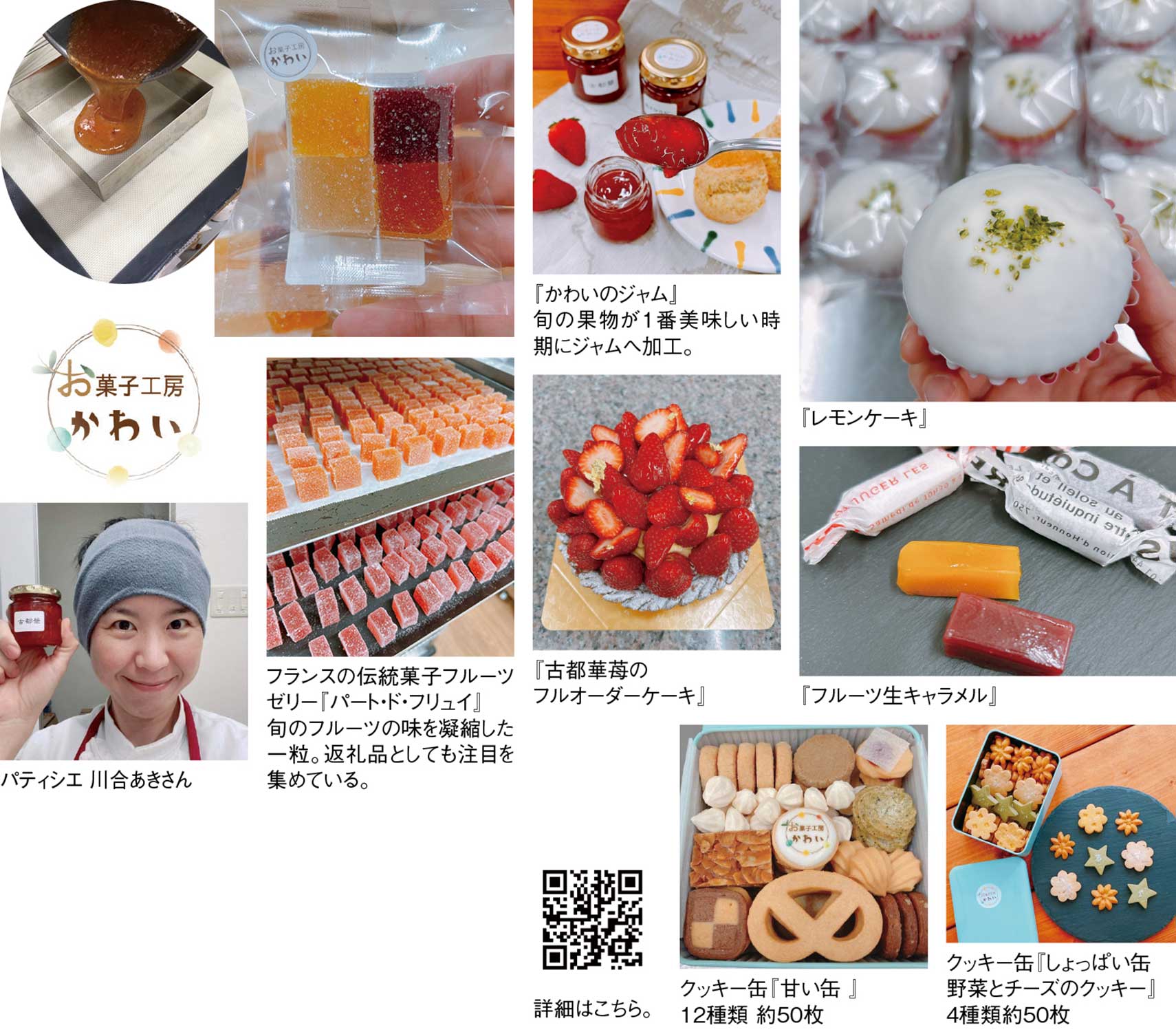 注文ごとに丁寧に仕立てるオーダーケーキや果実の最もおいしい瞬間を瓶に閉じ込めた『かわいのジャム』、素材を厳選した焼菓子は、地元だけでなく全国にファンを広げている。こうした人気を背景に、香芝市のふるさと納税返礼品として同工房のスイーツは高い評価を獲得。『クッキー缶』や『パート・ド・フリュイ』など、リピーターも毎年増えている。これにより香芝市はもちろん、小規模ながらも確かな技術と誠実なものづくりで応える『かわい』のお菓子を全国に知ってもらえている。