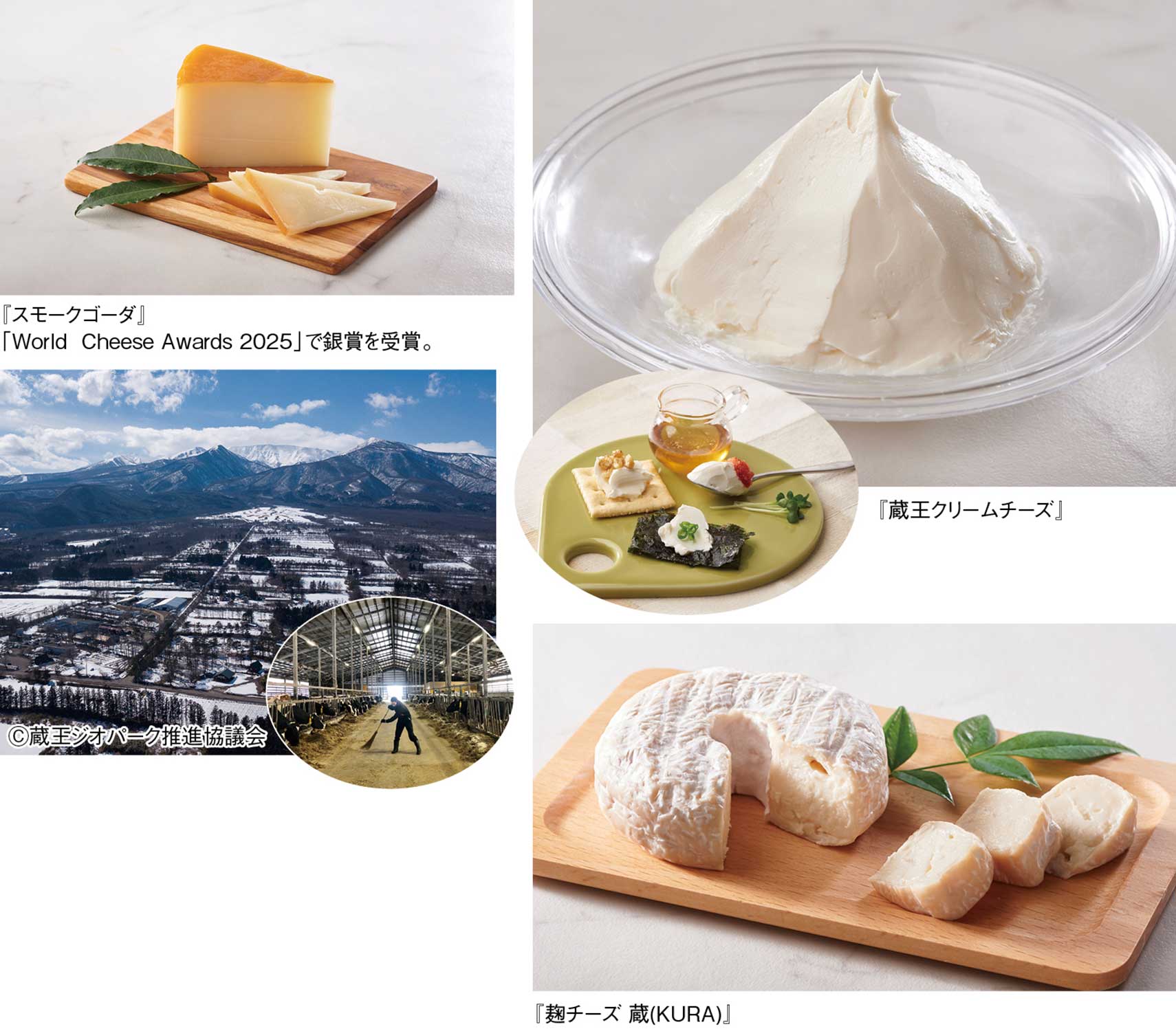『蔵王チーズ』を運営する「一般財団法人 蔵王酪農センター」は、1960年に神奈川県厚木市で設立され、1964年に宮城県蔵王町へ移転して以来、蔵王山麓の酪農と真摯に向き合ってきた組織である。良いチーズは良いミルクから生まれるという考えのもと、地域の生乳を生かした製品づくりを続けている。『蔵王クリームチーズ』は、なめらかで酸味が穏やかな味わいを特長とする。素材の力を引き出す姿勢は、洋菓子だけではなく、和食とも相性が良く、日常使いから贈答まで幅広く選ばれてきた。さらに、麹と酒粕を掛け合わせた『麹チーズ蔵(KURA)』は、産学連携の共同研究から誕生し、世界初の麹菌熟成チーズとして「和の発酵」とチーズの出会いを体現する。土地の恵みを無駄にせず、循環させる発想も蔵王らしいものづくりの核である。酪農の現場と加工の知見をつなぎ、品質管理と研究開発を重ねることで、蔵王発の乳製品文化を次代へつないでいる。工場直売店やレストラン、ふれあい牧場なども併設しているほか、「蔵王ジオパーク」のパートナー企業としても地域と歩む。