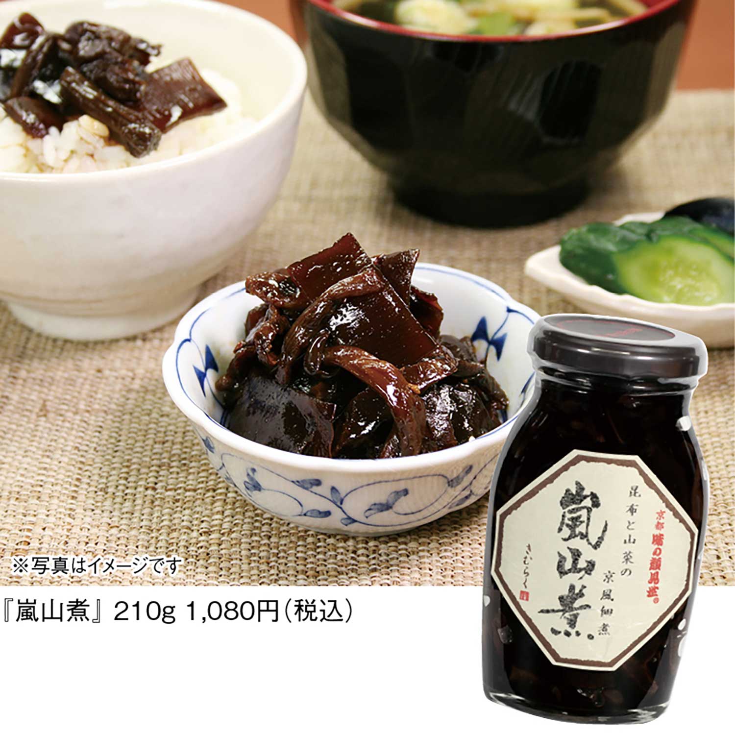 京都の京佃煮老舗『味の顔見世Ⓡ』の『嵐山煮』は、従来の佃煮のような濃い醤油味ではなく、京風にあっさり食べやすく、それでいて昆布の旨みが立つ逸品。筍の歯ごたえに、ぶなしめじと椎茸の風味豊かな味わい、そして実山椒の爽やかな余韻を重ね、ふっくらと炊き上げている。使う素材は国産にこだわり、発売以来数十年、根強い人気というのも頷ける。白飯はもちろん、お茶漬けや酒肴、手土産にも重宝する。従来と違う佃煮をぜひ味わってみて。