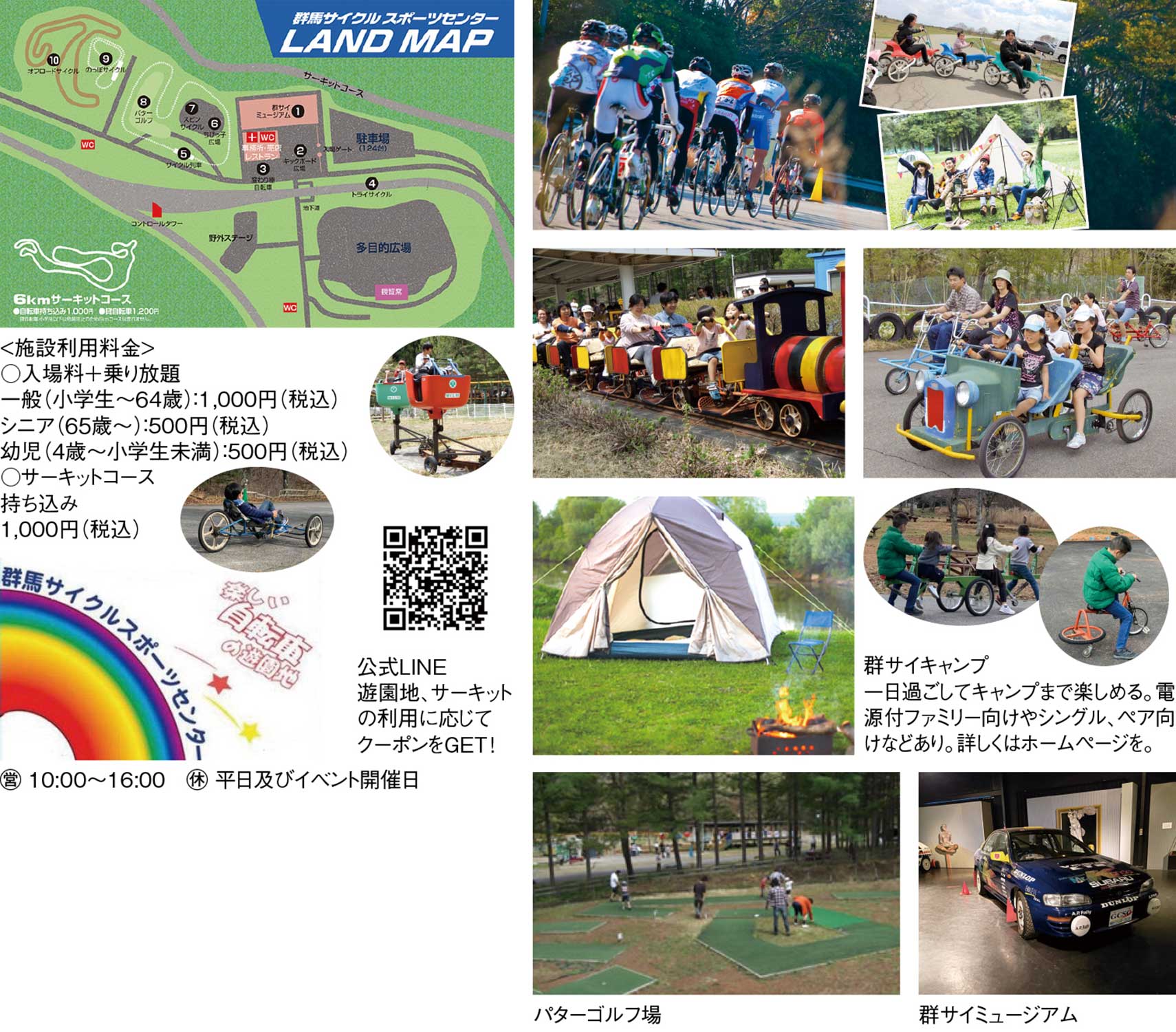 さらに館内には、往年のラリーカーやF1マシンが並ぶ「群サイミュージアム」、気軽に楽しめる全18ホールのパターゴルフなど、自転車以外の楽しみも豊富。隣接する「群サイキャンプ」では、電源付きサイトやソロ向けエリアなど設備の整ったキャンプ場が広がり、走って遊んで宿泊まで楽しめる点が大きな魅力だ。