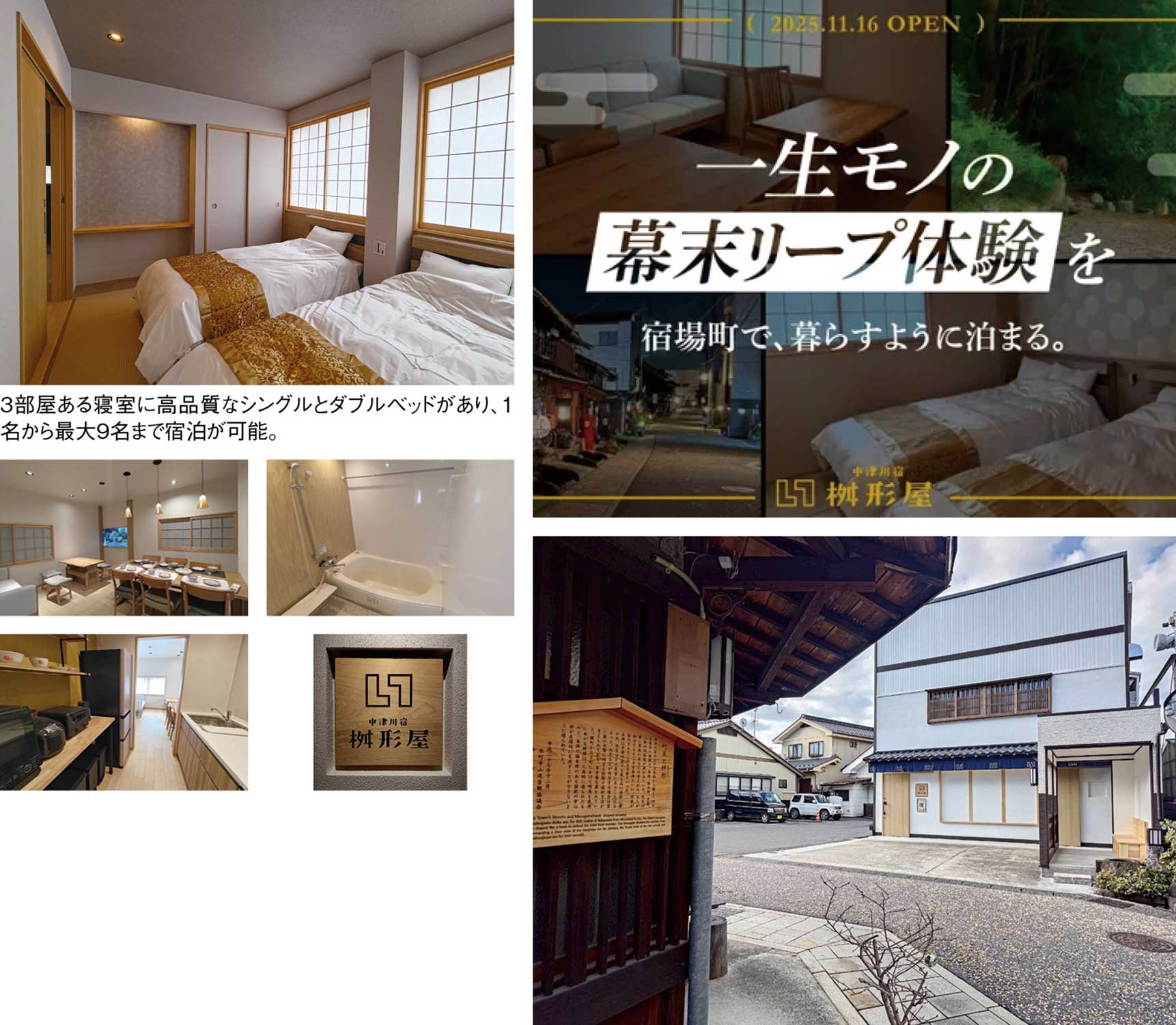 「宿場町に暮らすように泊まる」をコンセプトに、江戸時代の庶民の往来でにぎわった古き良き町並みを歩き、地元の食や文化を楽しみながら、「ここにいて、今ではない日本」のような空間に身を置き、普段の旅行では味わえない「暮らす旅」が堪能できるのが大きな魅力だ。国内旅行者にとっても、歴史と文化を身近に感じられる特別な滞在先。週末の小旅行や家族の記念日、仲間との思い出づくりに、ぜひ訪れてほしい。