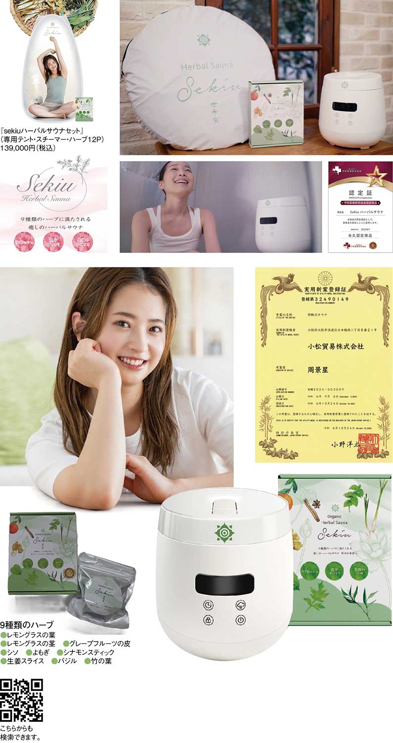 ハーブは冷凍保存で約2週間繰り返し使え、残ったエキスは入浴剤や足湯として再利用できるのも嬉しい。ハーブのリフレッシュ効果や交感神経の働きによるリラックス作用については、「福井大学」の高田宗樹博士のもとでエビデンスを取得。「めいほう睡眠めまいクリニック」中山明峰院長の監修のもと、睡眠の質の向上やいびきの軽減にも効果が期待されている。移動式サウナとして実用新案登録を取得し、「一般社団法人予防医療研究協会」から永久認定も取得している。