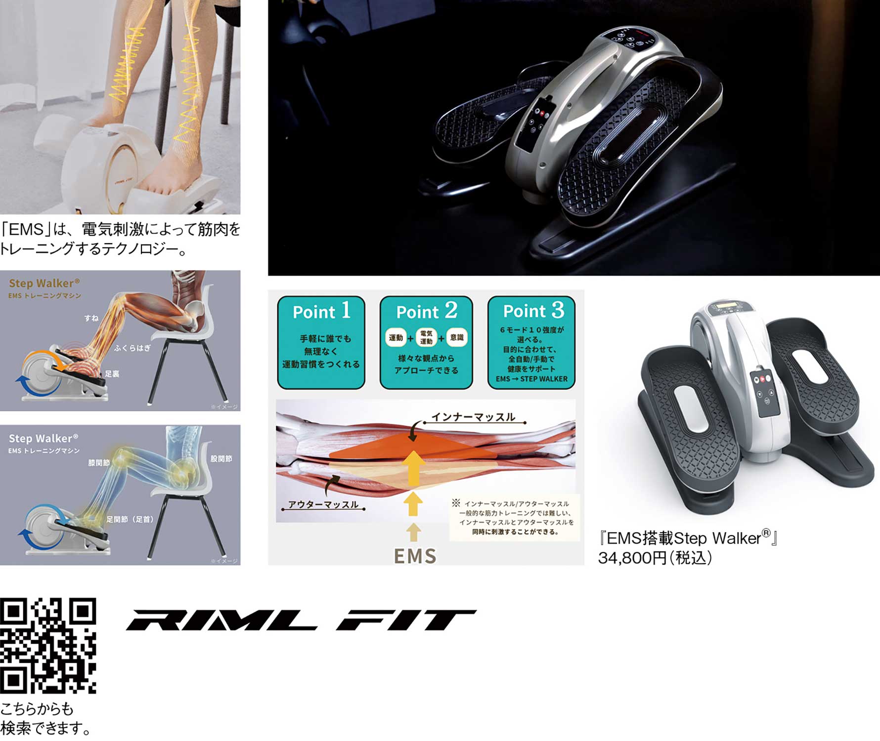 『Riml Fit』の『EMS搭載ステップウォーカー』は、日頃の運動不足が気になる人や歩行が不安になってきた人の脚力維持を室内で後押しするトレーニングマシン。前後に踏み出すシンプルな動作で、外歩きに近い刺激を脚へ届ける。加えてEMSが太ももやふくらはぎ周りの筋肉に働きかけ、少ない運動でも効果を得やすいのが特長。天候昼夜に左右されず、静音性にも配慮され、テレビを見ながら、また家族がそばで見守れる時間帯に使えるのも安心材料。毎日の小さな積み重ねが、買い物や通院、旅行の楽しみをつなぐ。まずは短時間から無理なくステップ習慣を始めてみて欲しい。