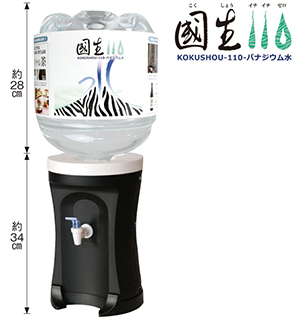 『國生110バナジウム水』 12L×2本 1セット 3,780円 どこでも手軽に置ける専用エコサーバーもプレゼント。原水は、富士山標高1,000メートルに位置する深さ300メートルの深井戸から採取。省エネで経済的!!