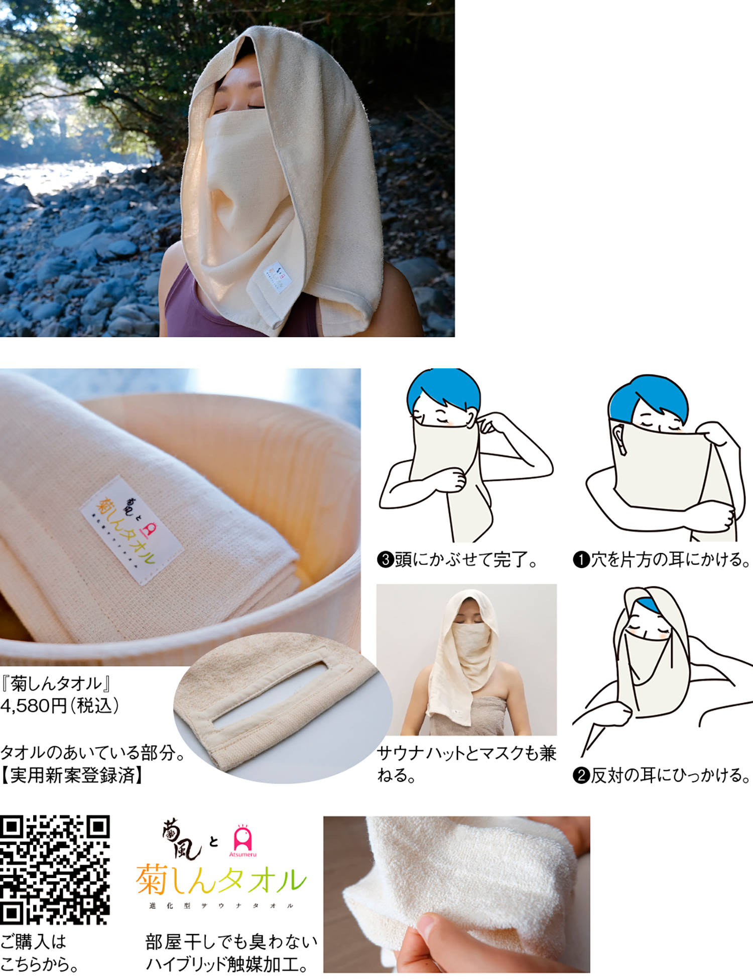 「ハット、マスク、タオル」1枚三役のサウナアイテム