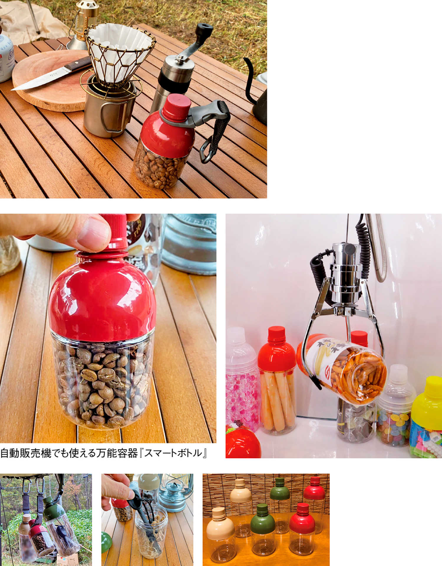 上部がキャップとして大きく開き、スイーツや惣菜などの食品、おもちゃや雑貨など様々なモノを入れることが可能だ。使い勝手は、ペットボトルと同様。ユニークな「魅せる陳列」でお客様の興味をひくことも。一般的な350㎖、500㎖ボトルと同じサイズなので自動販売機で売ることもできる。