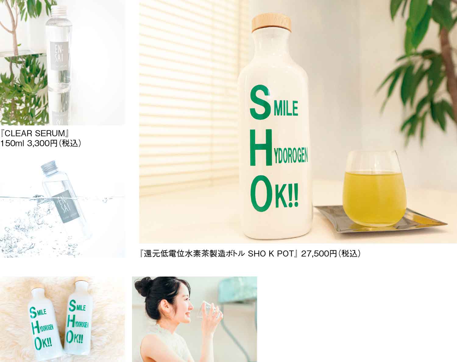 美にこだわる方には、クレンジングと部位用スキンケアが同時にできる、美容・保湿成分配合の『CLEA SERUM』もオススメ。肌老化を防止し、オーガニック植物由来の保湿成分や美容成分が、明るく美しい肌をキープする。水素茶で体の中から美しさを保ち、『CLEA SERUM』で美肌をキープして、キレイの習慣を身につけよう。
