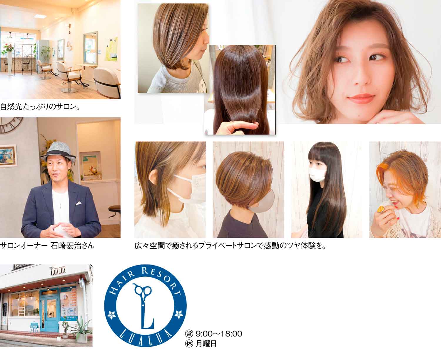 「くつろぎの場所」「幸せの時間」という意味を持つハワイ語「ルアーナ」から名付けられたという『Hair Resort LUALUA』は、地域密着型のハワイアンリゾートサロン。広々としたリラックス空間で経験豊富なトップスタイリストによるマンツーマン施術を受けられる自分へのご褒美にピッタリのサロンだ。一人ひとり丁寧にカウンセリングを行い、「その人らしさ」を提案。家に帰ってからのお手入れも快適な理想のヘアスタイルへと仕上げてくれる。