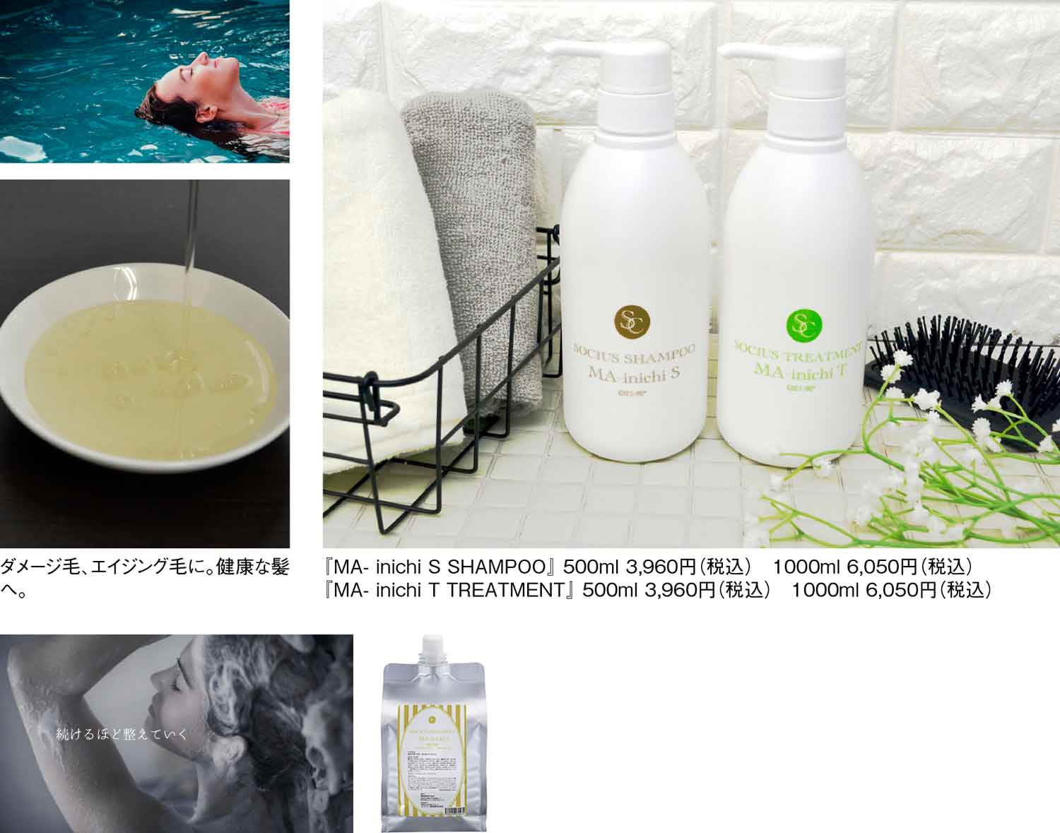 『株式会社B next』は設立以来、現場の理美容師の方たちと共に、今までにない発想を形に変え、次世代の美容機器を開発・提供している。ダメージ毛、エイジング毛に効果を発揮する『MA-inichi S SHAMPOO(マイニチ エス シャンプー)』と『MA-inichi T TREATMENT(マイニチ ティー トリートメント)』。シャンプーは、毛髪内の分子を少しずつ正常な位置に移動して髪のダメージホールを埋めていく機能が。また、アルカリを除去し、カラー毛やパーマ毛の進行ダメージも防止。何も与えずできるだけ取らず毛髪を一番正常な状態に戻してくれる。トリートメントは、シャンプーで整えた環境をしっかり保つためのコーティング。パーマやカラーなどで毛髪に必ずできるシステイン酸をイオン化させず、毛髪を傷めない。ツルツル、サラサラでスタイリングがしやすく、軽く保護するだけ。これまでにない最上級に軽いΦ型ケラチン(フェザーケラチン)を採用している。