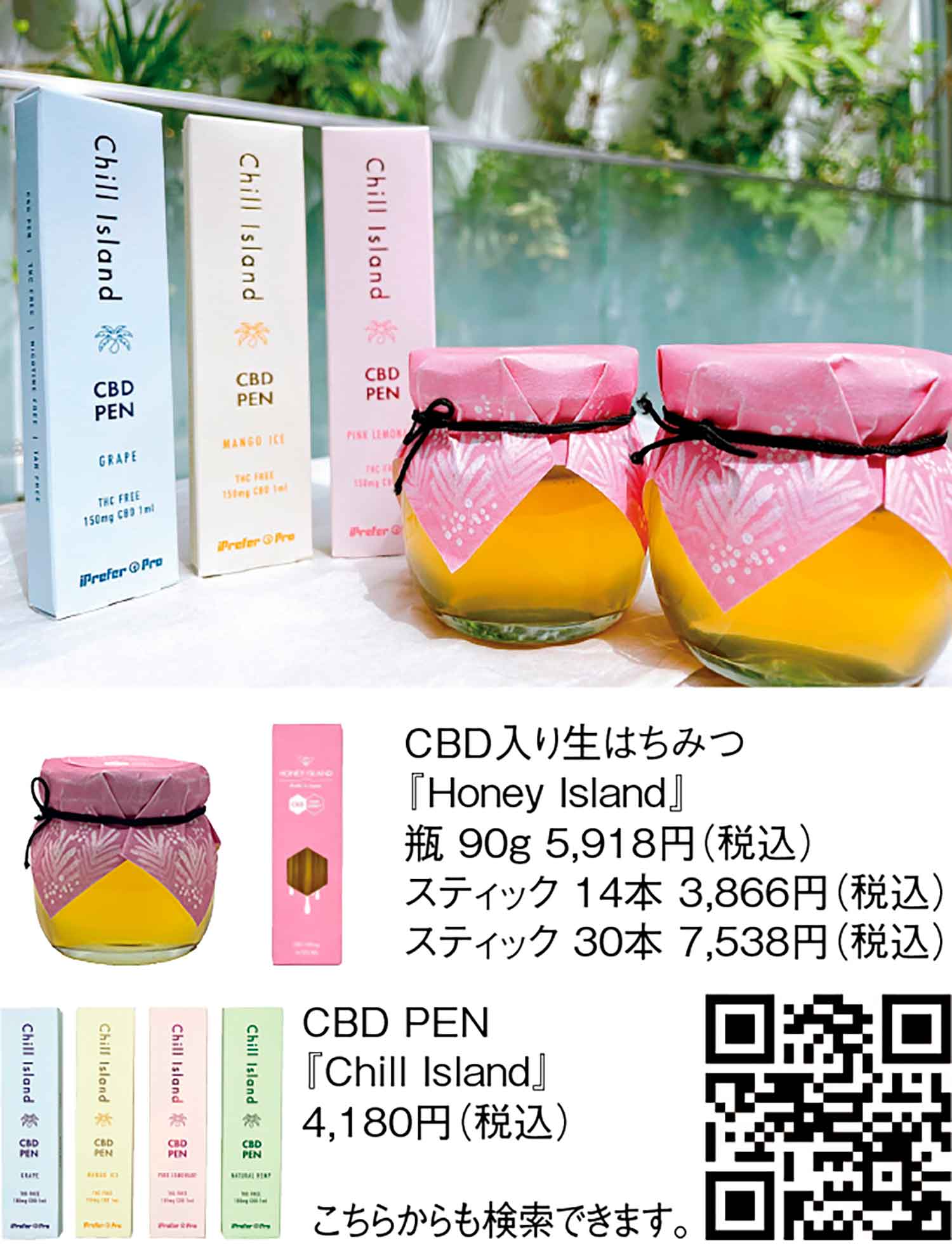 世界各国のセレブたちをはじめ、欧米を中心に多くの人々の関心を寄せているCBDは、ヘンプ(麻)に含まれる主要な天然成分の一つで、医療や健康・美容業界から注目を集める成分である。現在、日本でも、CBD専門店やCBDカフェなどもできており、大手百貨店や大型のショッピングモールなどでも、CBD製品を取り扱い始めるなど注目されている。『cbd island株式会社』では、日本初のCBD入り生はちみつや吸引タイプのCBD PENなどを用意しているので、ぜひ自分に合ったものを試してほしい。