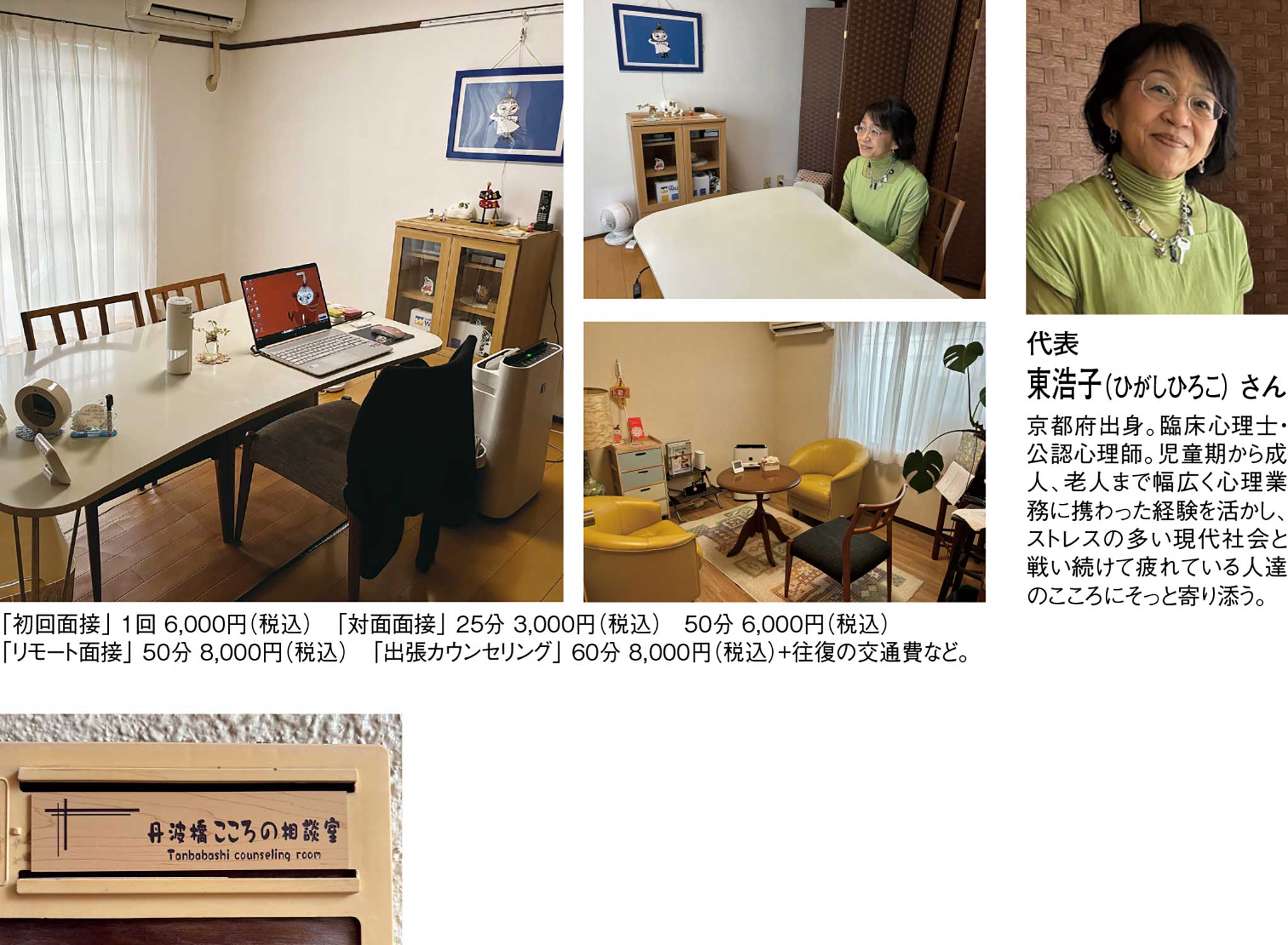 人付き合いの葛藤、家庭内暴力や虐待、いじめ、ハラスメント、発達障害、ひきこもりなど大きなストレス、苦しみを伴うこころの不調にワンランク上のカウンセリングで丁寧に寄り添う『丹波橋こころの相談室』。代表の東浩子さんは、30年を超える豊富な臨床経験を持つ臨床心理士・公認心理師。児童相談所の心理判定員、教育相談所やスクールカウンセラー、精神科など様々な現場で培ったカウンセリング技術でお子さまから高齢者まで幅広い悩みに的確に対応する信頼できるカウンセラーだ。