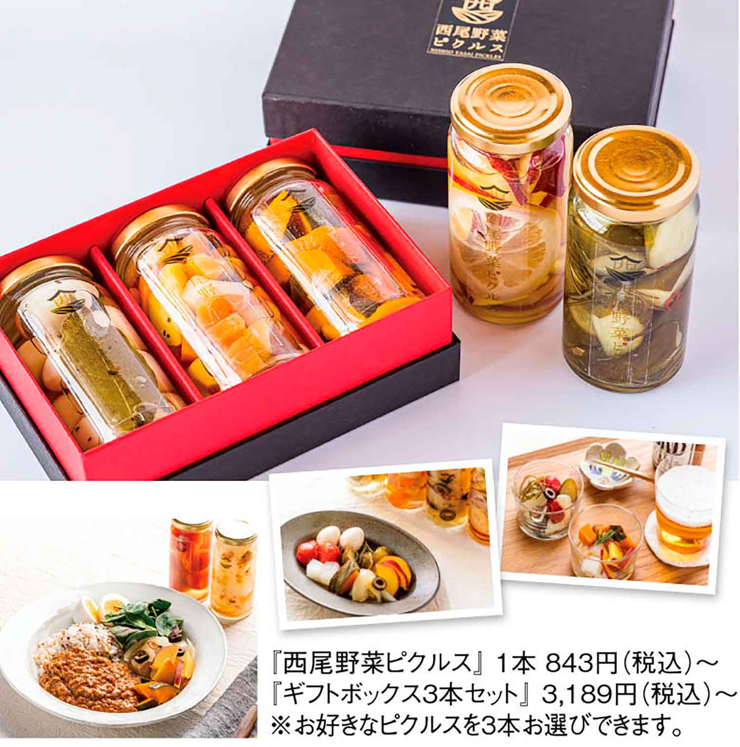 自家栽培のイチジク&イチジクジャムで有名な『愛楽農園はいぼーなす』の新商品は、温暖な気候や矢作川がもたらす自然で格別に美味しく育つ西尾野菜を使った『西尾野菜ピクルス』。採りたて野菜を使い、見た目も楽しめるよう素材の彩りを活かして調理。保存料は加えず、昆布だしやリンゴ酢などを使用し、日本人の好む味に合わせて味付けを工夫している。「綺麗」「簡単」「ヘルシー」で今までと違った新しいピクルス。手土産や贈り物としてもオススメ。