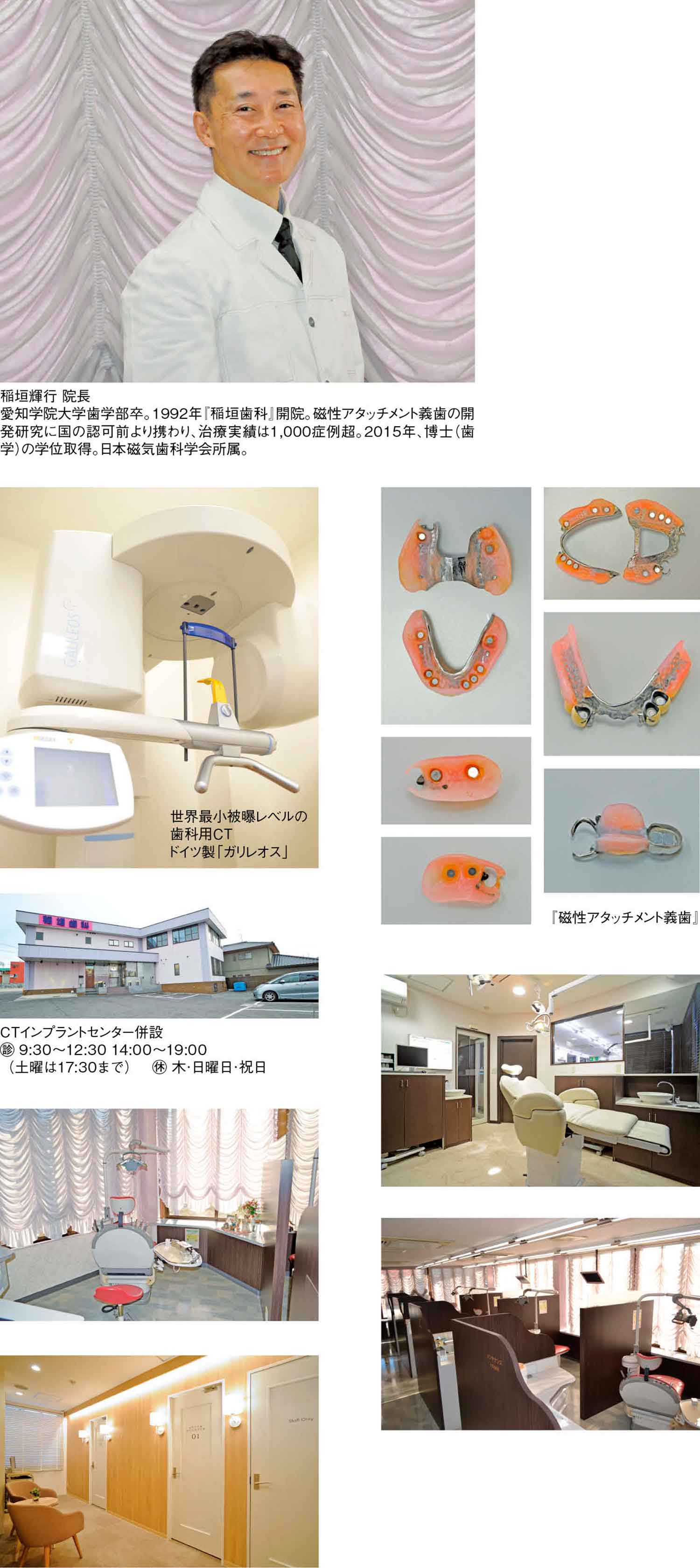 稲垣院長は、「磁性アタッチメント義歯」の形状の違いによって口腔内の組織にどのような力学的な影響を与えるかをコンピュータで解析した研究が「義歯設計を行う上で貴重な新知見」と評価されて歯学博士の学位を取得。国内の磁性アタッチメント義歯の開発段階から携わった「磁性アタッチメント義歯」の国内屈指のスペシャリストだ。