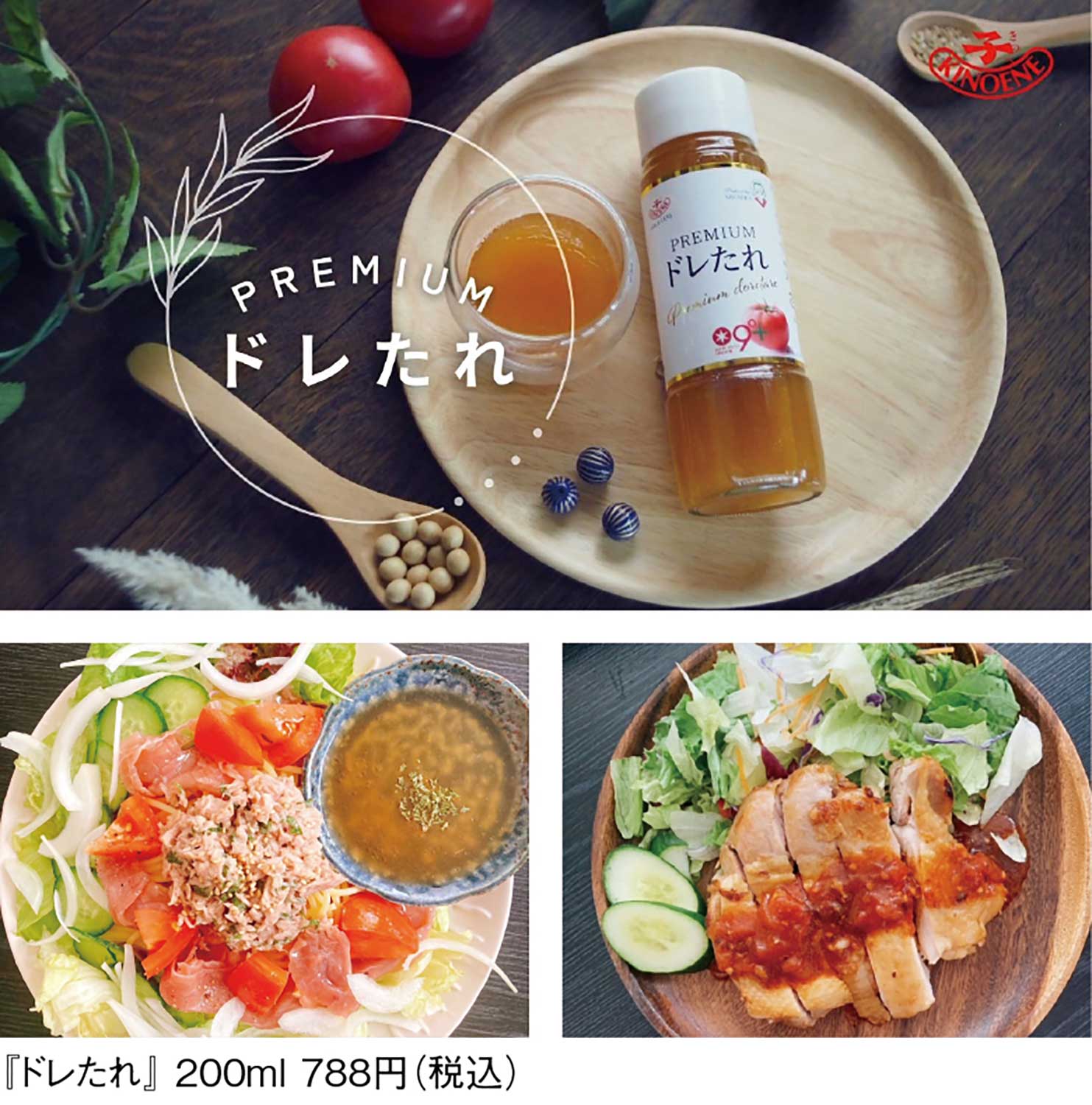 『キノエネ醤油株式会社』の『ドレたれ』は、平均糖度9度以上の最高に甘いスーパーフルーツトマトに花ゆず、玉ねぎ、セロリ、赤酢(米酢)、白しょうゆ、焙煎していない純正胡麻油白口を使った贅沢なドレッシングたれ。スーパーフルーツトマトならではのコクと甘さ、酸味を抑えた味と適度なさっぱり感が特長で、毎日食べても飽きがこない。それぞれのうま味がギュッと凝縮し、素材の味をグンとおいしく引き立ててくれる。どんな料理とも相性抜群、多彩な味を楽しめる。