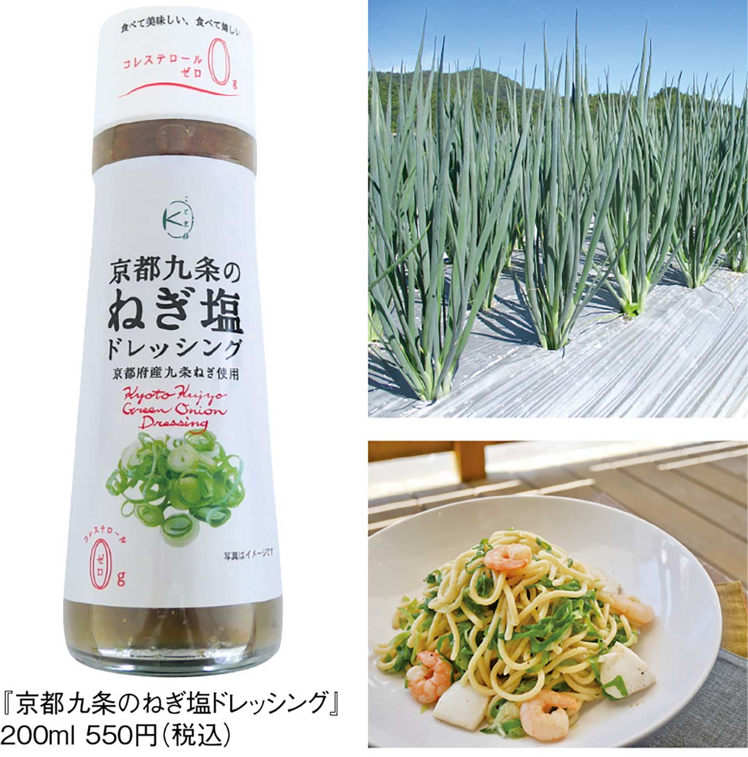 『京の九条ねぎやさん』の『京都九条のねぎ塩ドレッシング』は、京都府産九条ねぎをペーストにしたものを原料として使用。ごま油ベースでさっぱりとした味わいで、サラダ以外にも焼き肉のタレや豚しゃぶなどの肉料理にも使える万能タイプの調味料だ。切ったきゅうりに和えるだけで居酒屋にあるようなスピードメニューも手軽に作れる。塩焼きそばの味つけはこの1本で完成し、京都の伝統野菜である九条ねぎを家庭の食卓でも身近に感じられる。こだわりのギフトとしても人気。