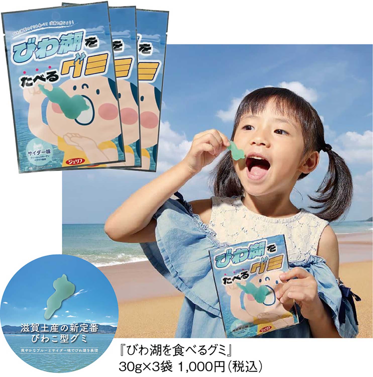 プロ・業務用を中心にゼラチンやコラーゲンを製造している『株式会社ジェリフ』が、地元滋賀県の魅力を全国の人に知ってほしいと開発し、早くも滋賀のお土産として人気になっているのが、『びわ湖を食べるグミ』。滋賀を象徴する琵琶湖の美しい形状を再現しており、爽やかなブルーの色味とサイダー味。心地よい食感が口の中に広がるグミに仕上げた。コラーゲンペプチド配合でタンパク質も摂取でき、子どもさんのおやつにもぴったりだ。