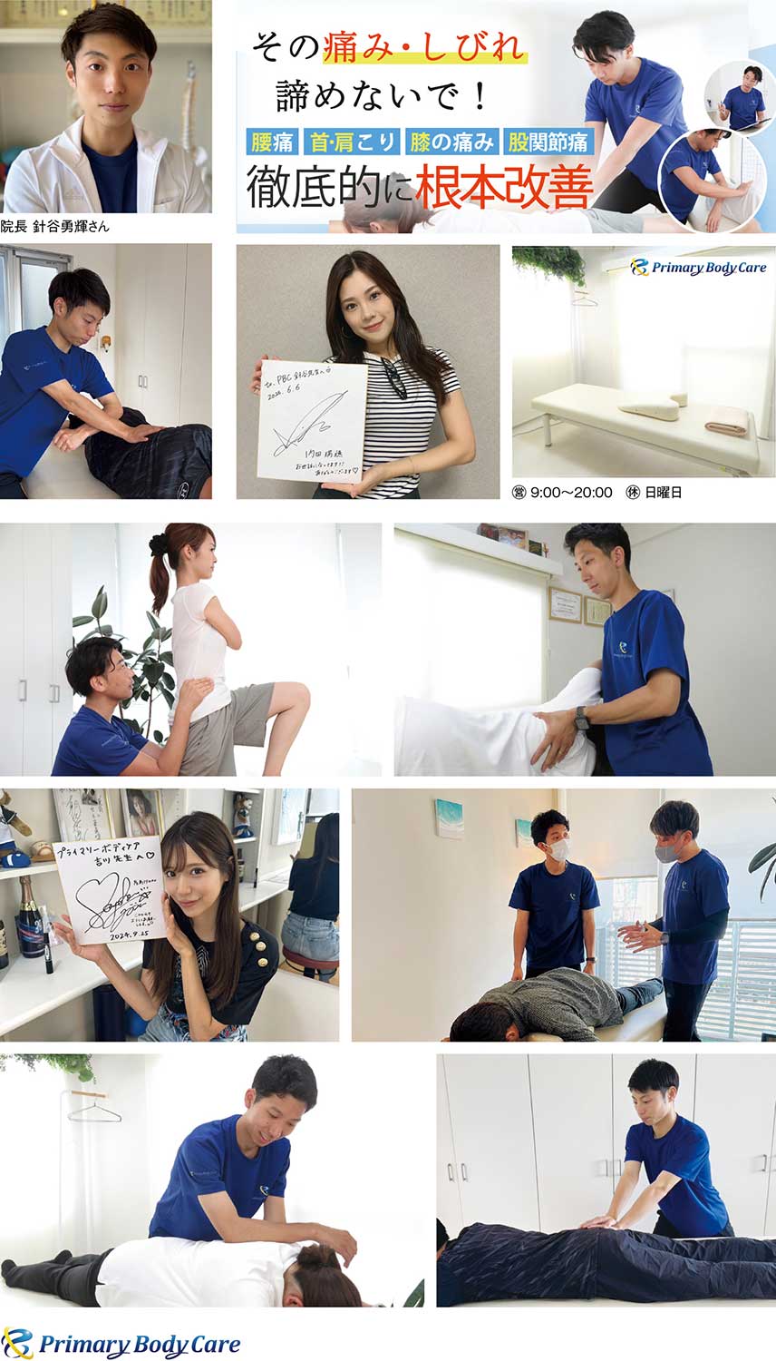 『Primary Body Care久が原本院』院長の針谷勇輝さんは、理学療法士として8万件以上の臨床経験を持ち、国内外で様々な専門資格を修得してきた身体ケアのスペシャリストである代表の吉川一彰さんから、院長として店舗を任され信頼できる先生だ。